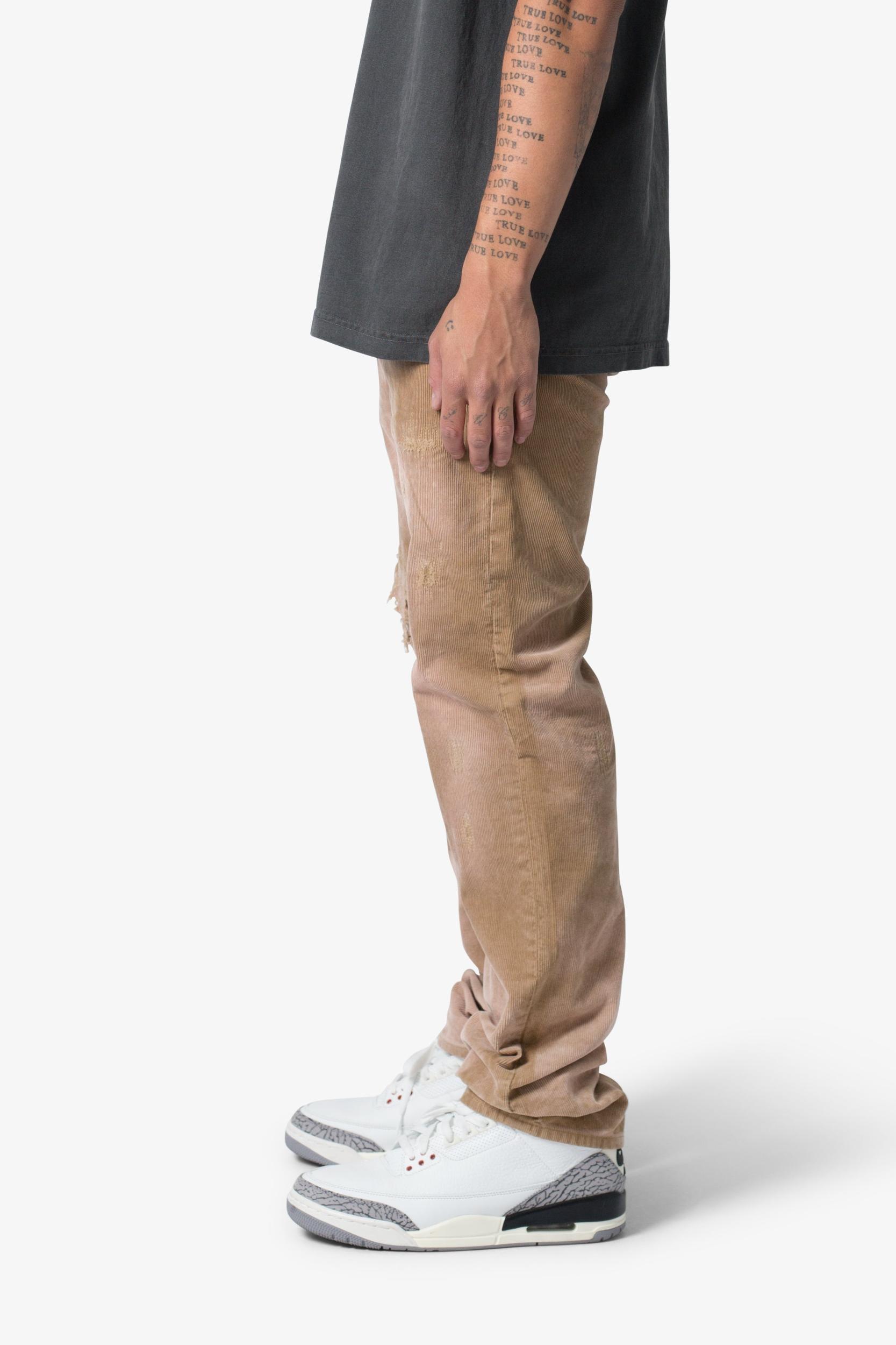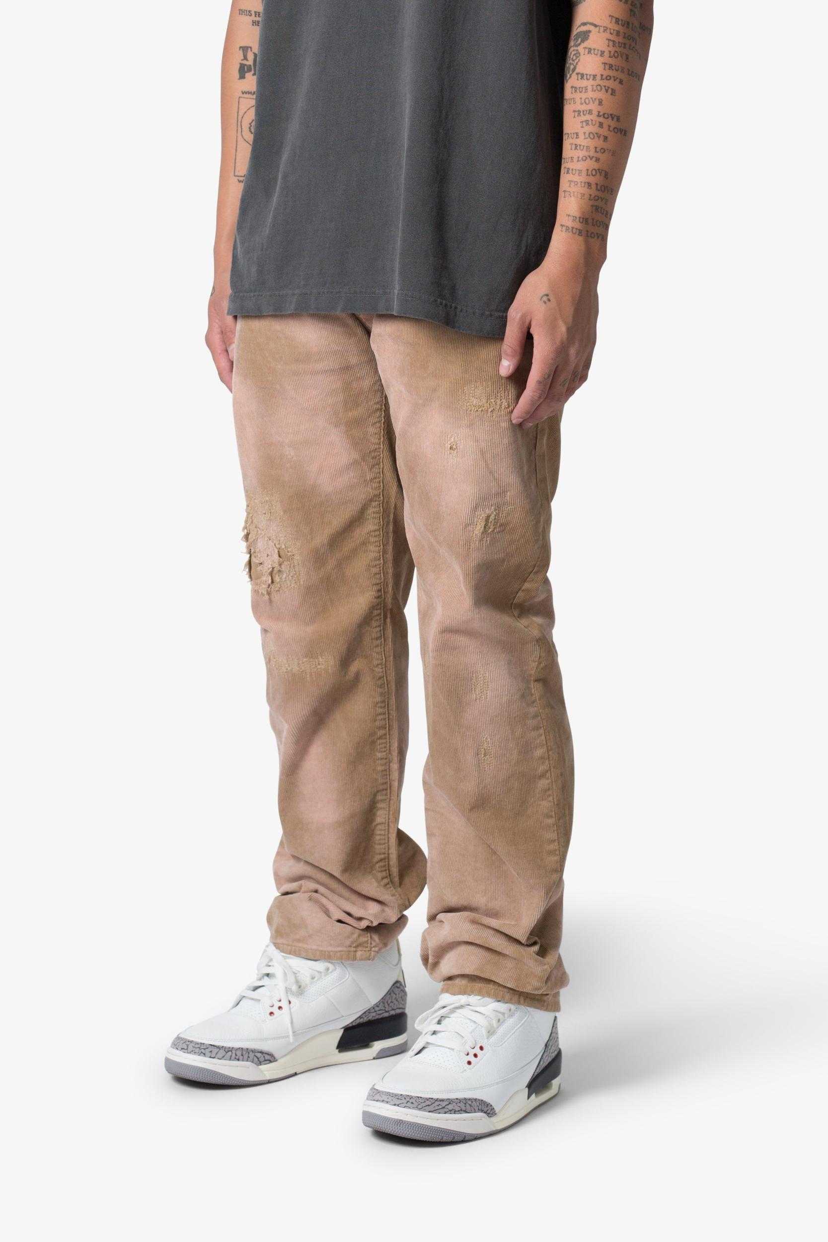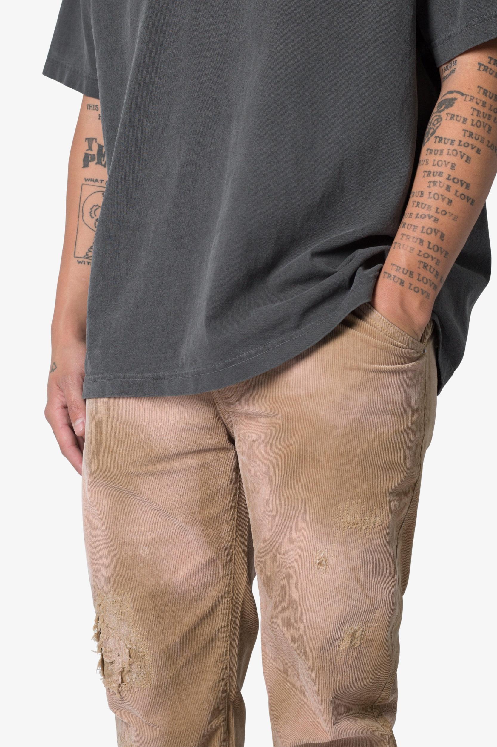 the V648 Repaired Corduroy Pants is designed with our updated V fit which is more relaxed throughout than our initial V fit, featuring a heavy vintage wash with whiskering details throughout, constructed from 100% cotton corduroy, and finished with self distressing and repairs throughout. details relaxed fit throughou