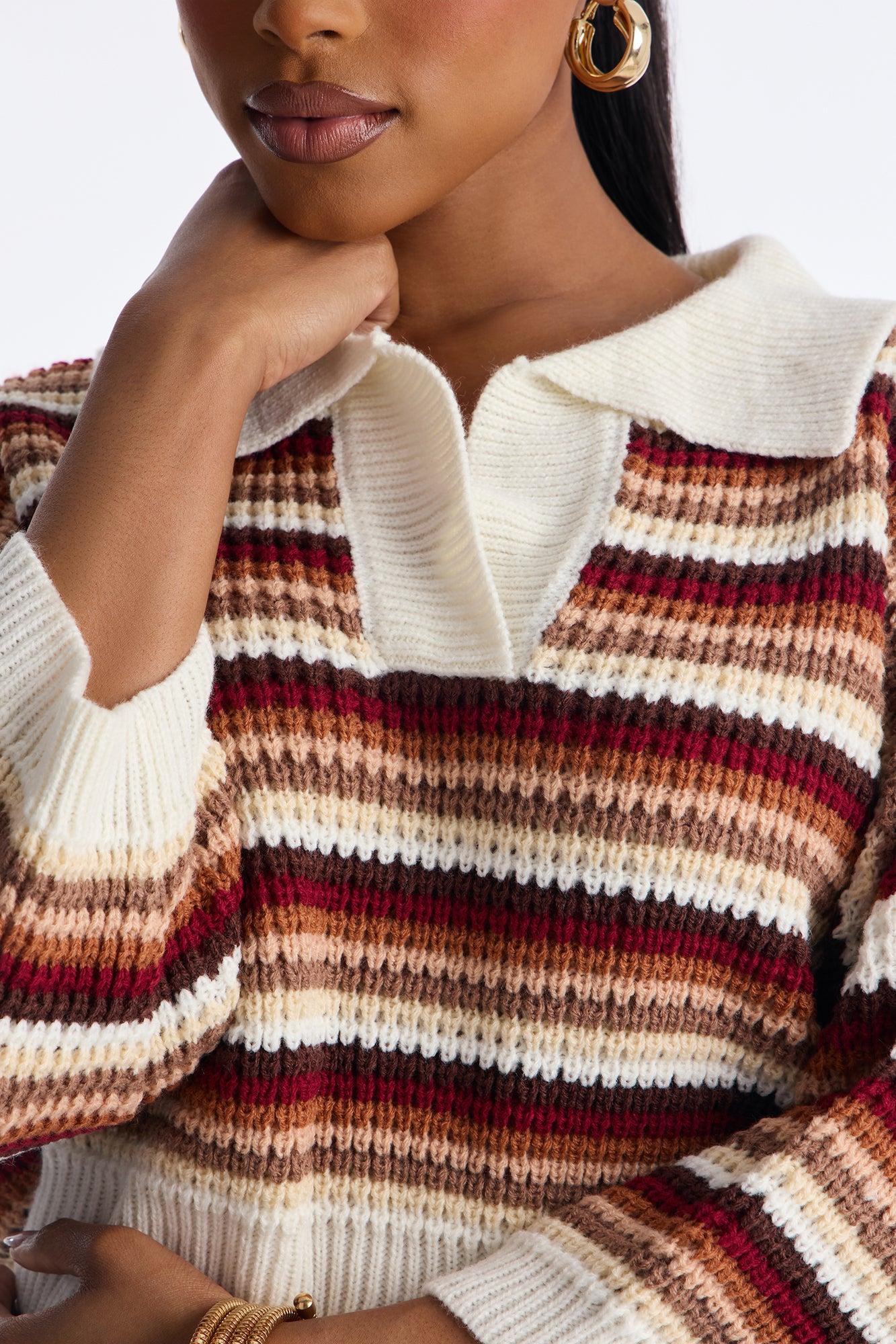Vacay Vibe Striped Crochet Polo - Chocolate/Combo Female