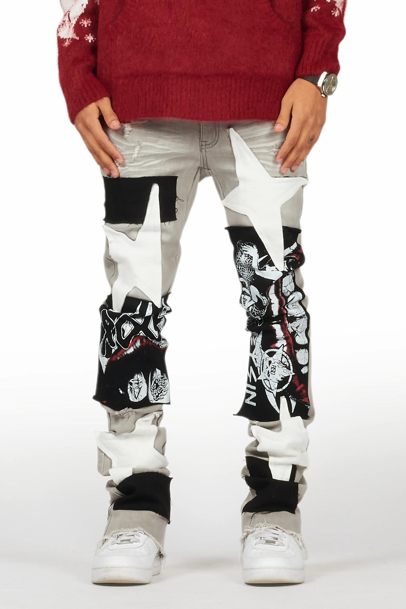 Vadim Grey Patchwork Stacked Flare Jean Male