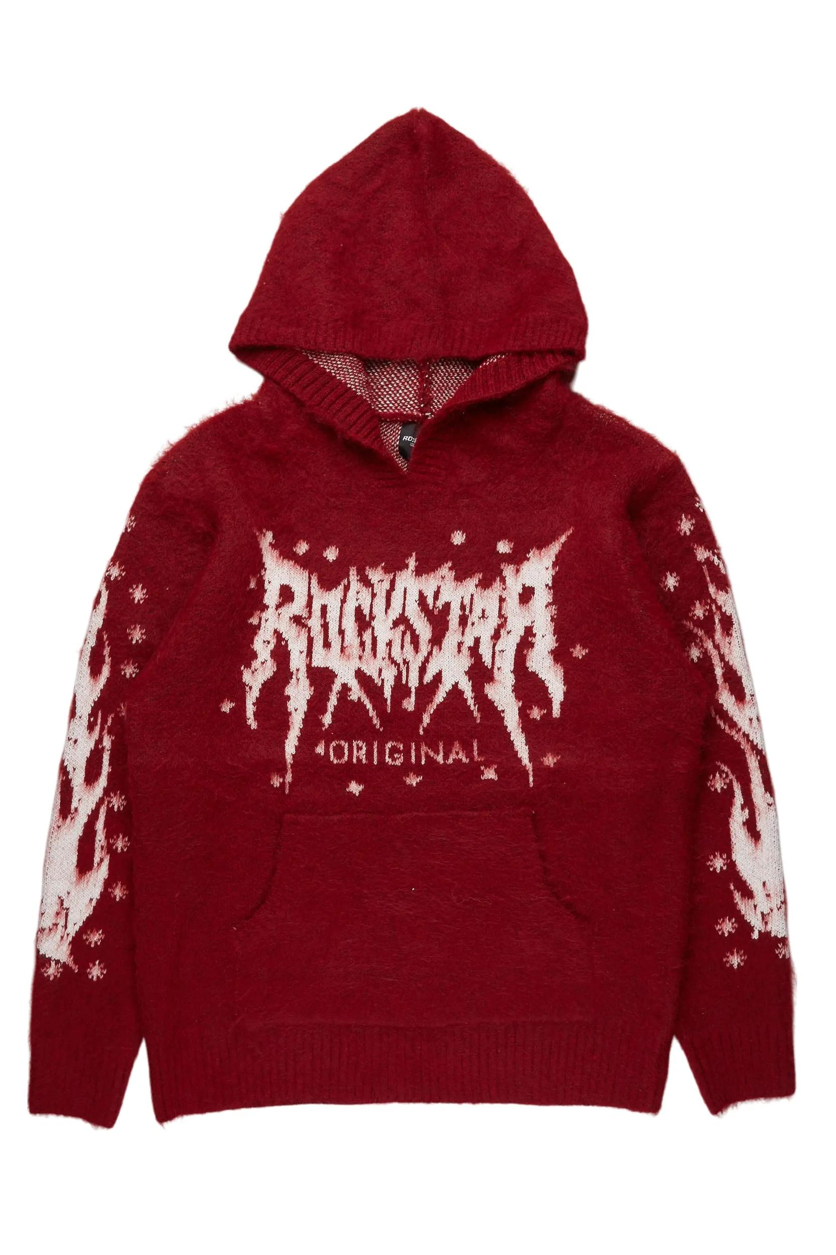 An urban hoodie for men in red. Designed with ultra soft knitted mohair fabric for a must-cop streetwear style. Hooded neckline Long sleeves Pullover style Kangaroo pocket Ribbed knit trims Custom RSO logo Fuzzy knitted mohair fabric