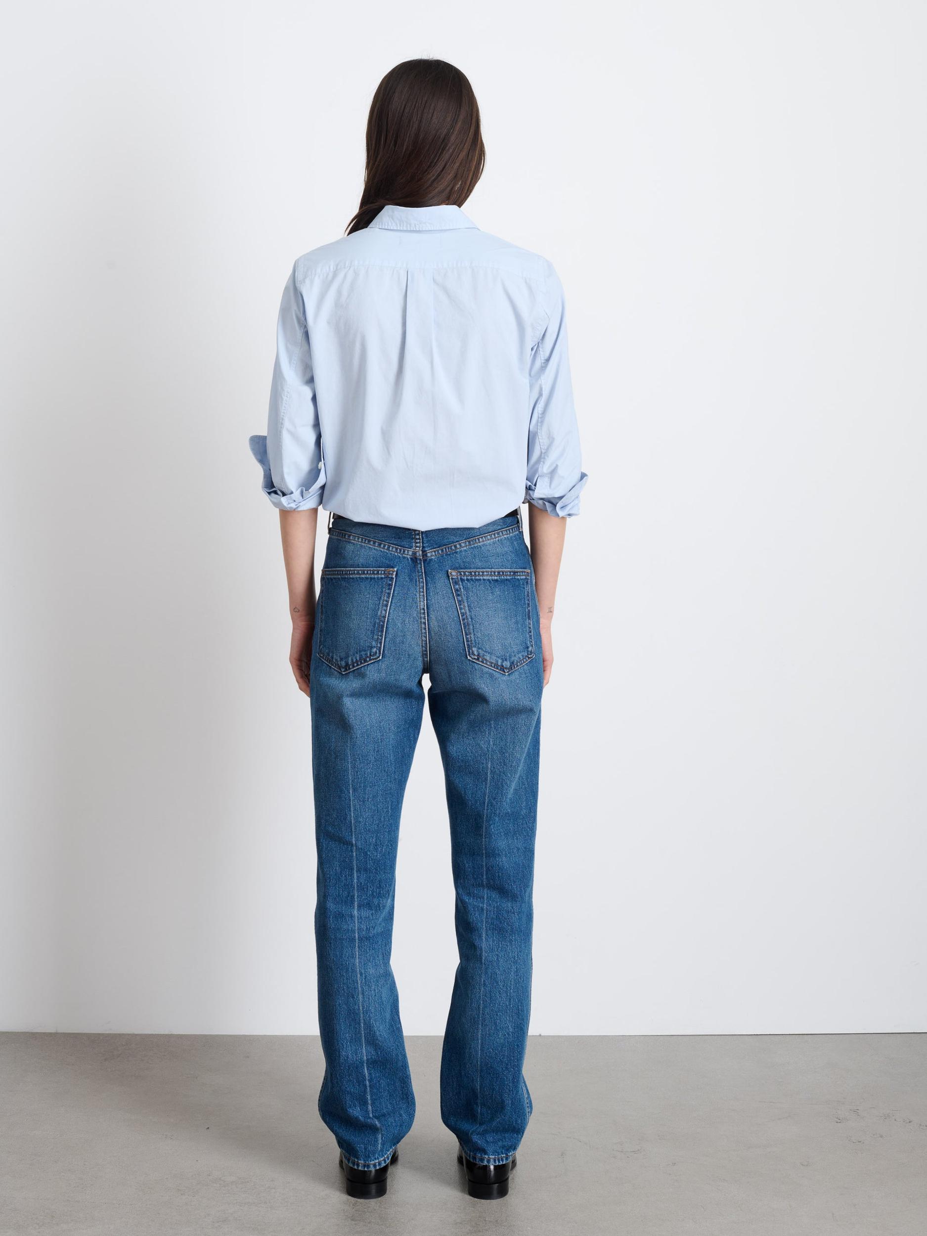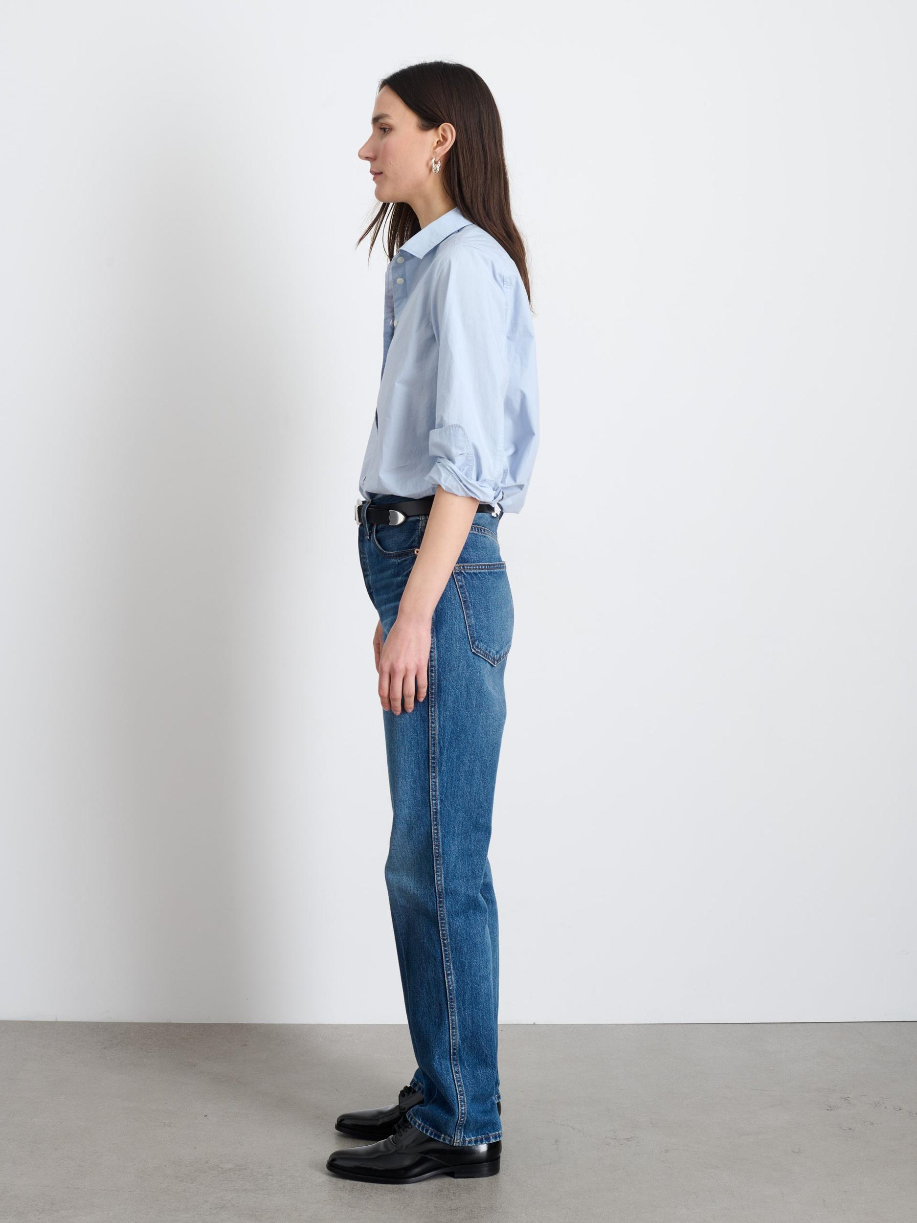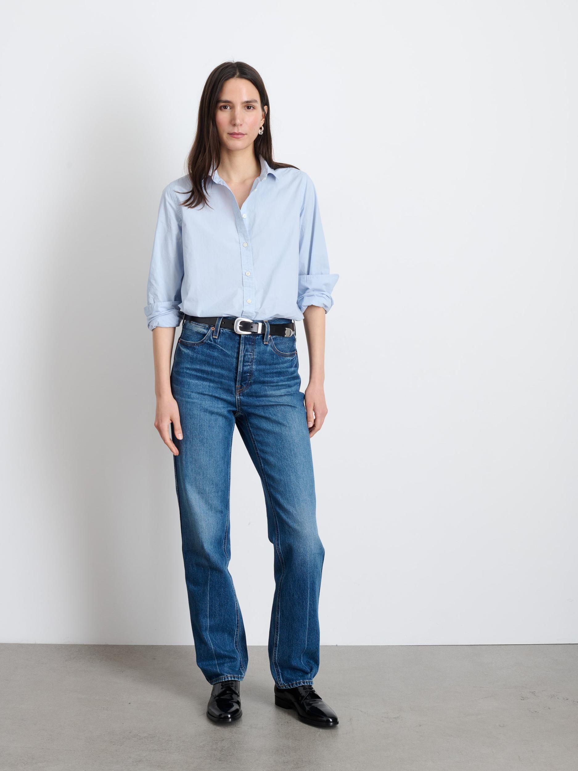 A classic (in every sense of the word) button-down, with all the right details. Crafted from a lightweight poplin that looks just as good a bit rumpled up. Heads up: if you love our Jo shirt, but want something a bit more fitted, Val's your gal. Fits true to size. Mijo is 5'11" and wearing a size small. Size small meas