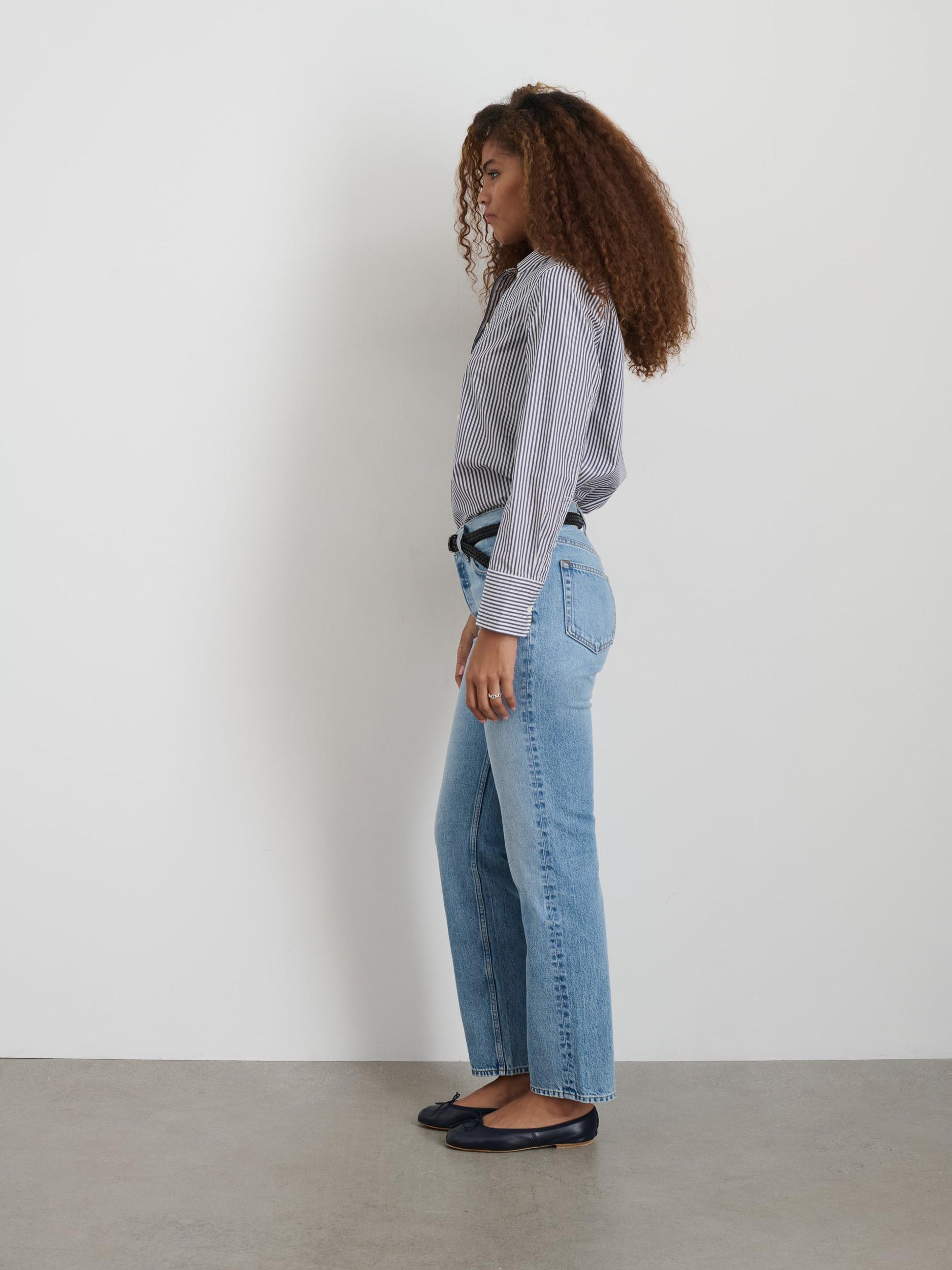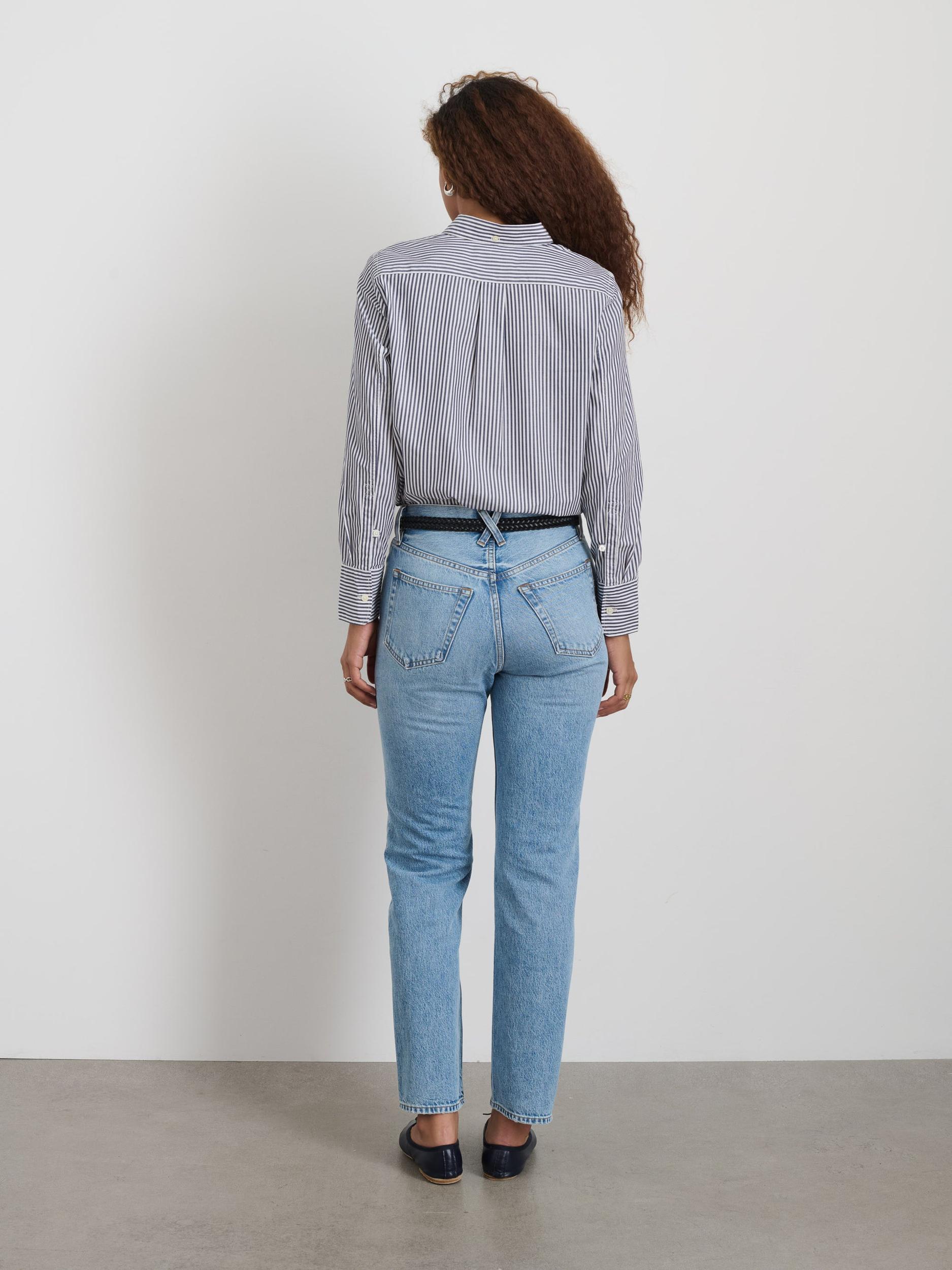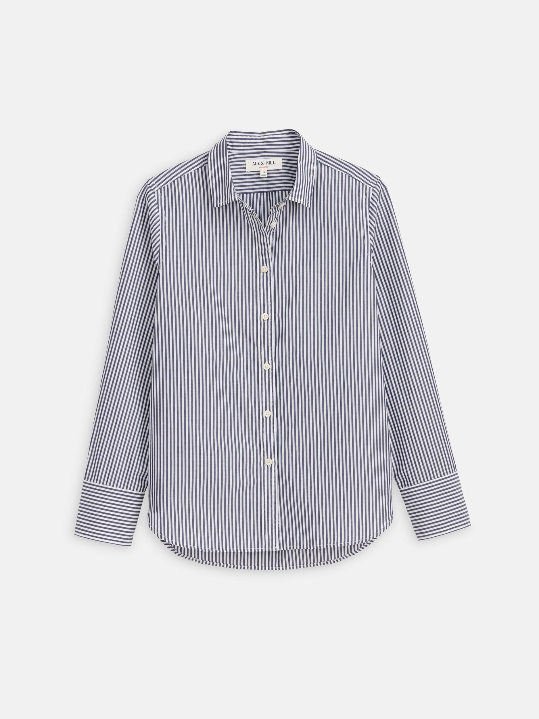 A classic (in every sense of the word) button-down, with all the right details. Crafted from a lightweight poplin that looks just as good a bit rumpled up. Heads up: if you love our Jo shirt, but want something a bit more fitted, Val's your gal. Fits true to size. Mijo is 5'11" and wearing a size small. Size small meas