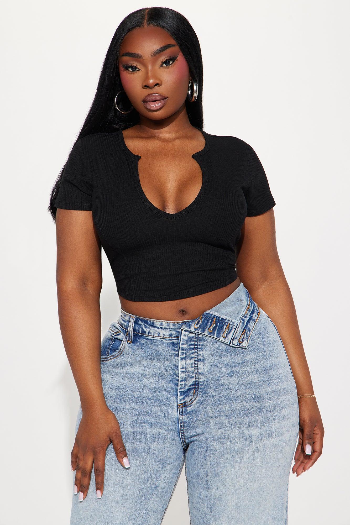 Valentina Plunge Crop Top - Black