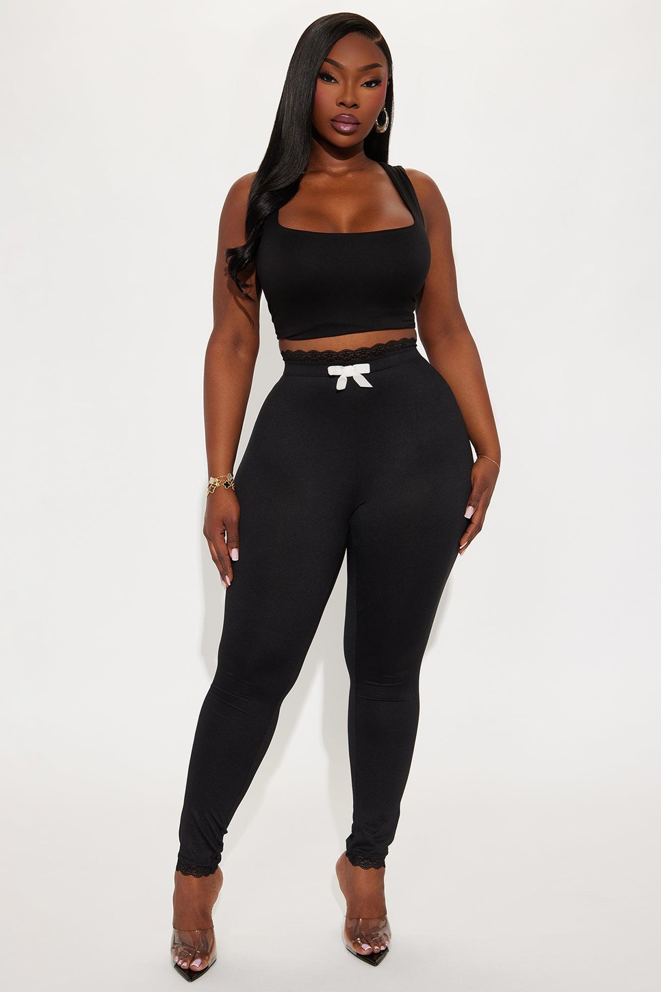 Valentina Solid Lace Trim Legging - Black Female
