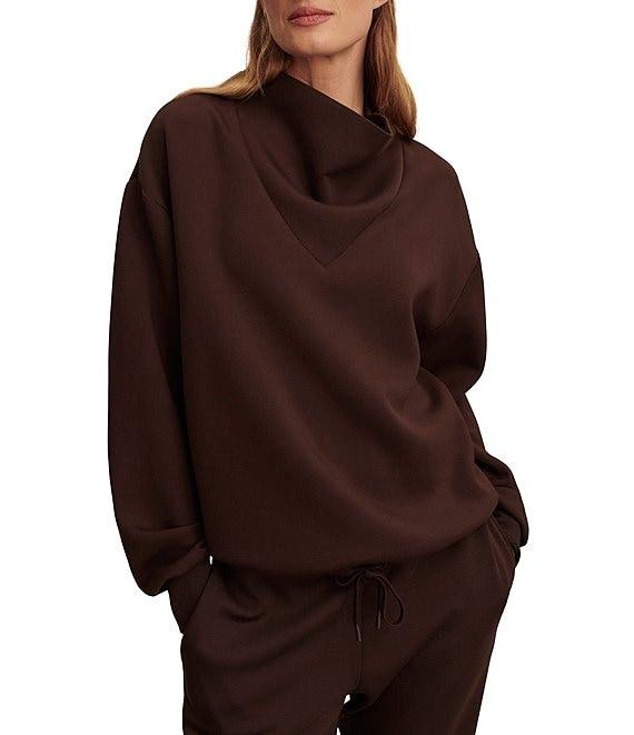 From Varley, this sweatshirt features: Long oversized sleeves Drop shoulder Banded ribbed cuff High cowl neckline V-shaped panel detail Relaxed contemporary silhouette Drawstring closure hemline for versatile styling Pullover construction Soft & lightweight 'DoubleSoft® fabrication for upmost comfort Approx. 23.6" front length; approx. 22.5" sleeve length Viscose/polyester/elastane Machine wash on cool gentle cycle, wash inside out, wash with similar colors, promptly remove from wash, do not bleach, do not use fabric softeners, lay flat to dry, do not tumble dry, iron on lowest setting if needed Imported.