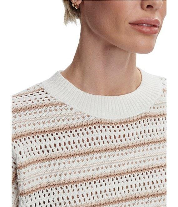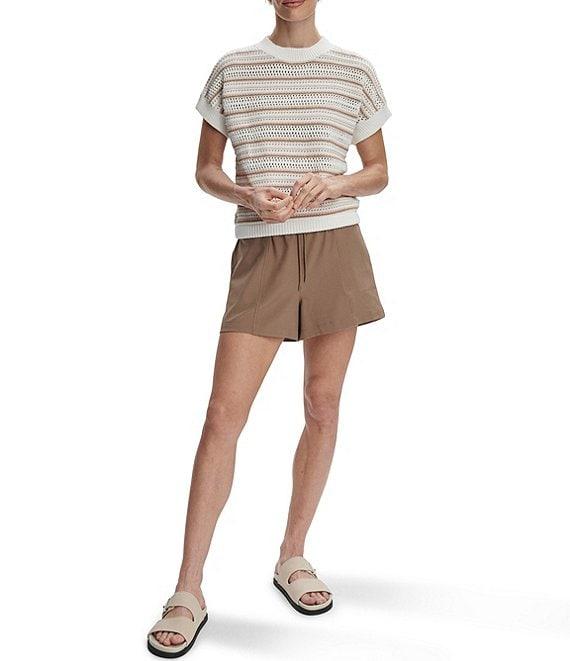 From Varley, this top features: Cotton polyester tube yarn fabrication Pointelle and stripe detail Crew neckline Short sleeves Pullover construction Drop shoulder detail Ribbed sleeve, collar and bottom banding detail Approx. 22.04" length Cotton /polyester Dry clean only Imported.