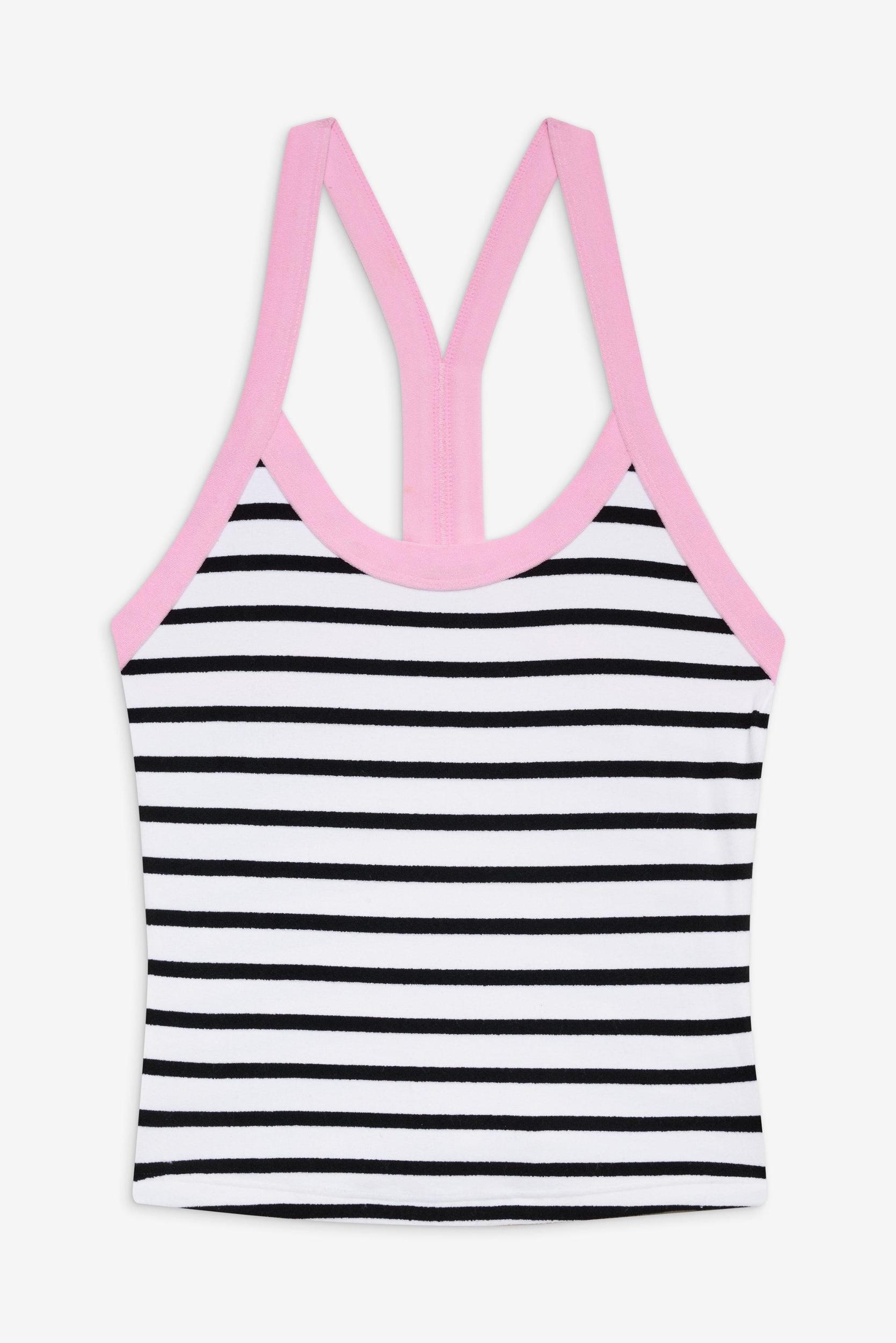 The Velma tank top is a versatile essential. This soft style is made to match our Vintage Stripe swim, offering a perfect pairing for both beach days and casual wear. Details Racerback tank top Cozy terry cloth fabric Scoop neck design Flattering compressive fit Fabric 95% Nylon + 5% Spandex Terry Swim Model Size & Fit This style runs true to size Eileen is wearing a size Small Height 5’9” (175cm) Bust 32” (81.5cm), Waist 25.5" (65cm), Hips 35" (89cm)