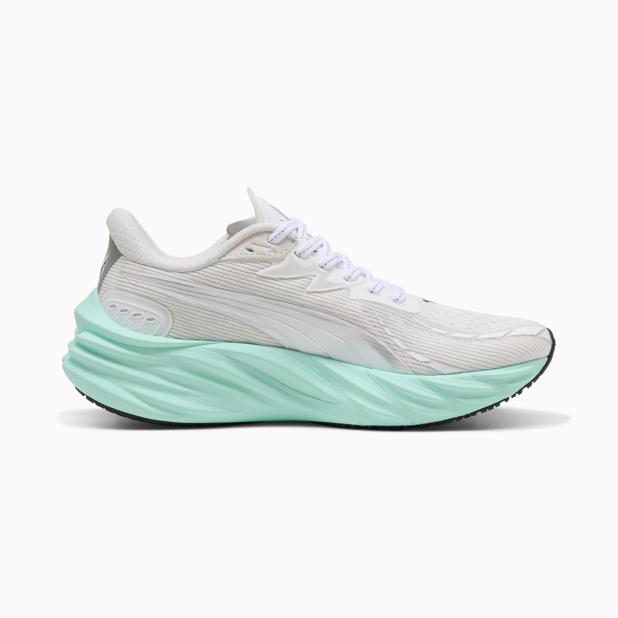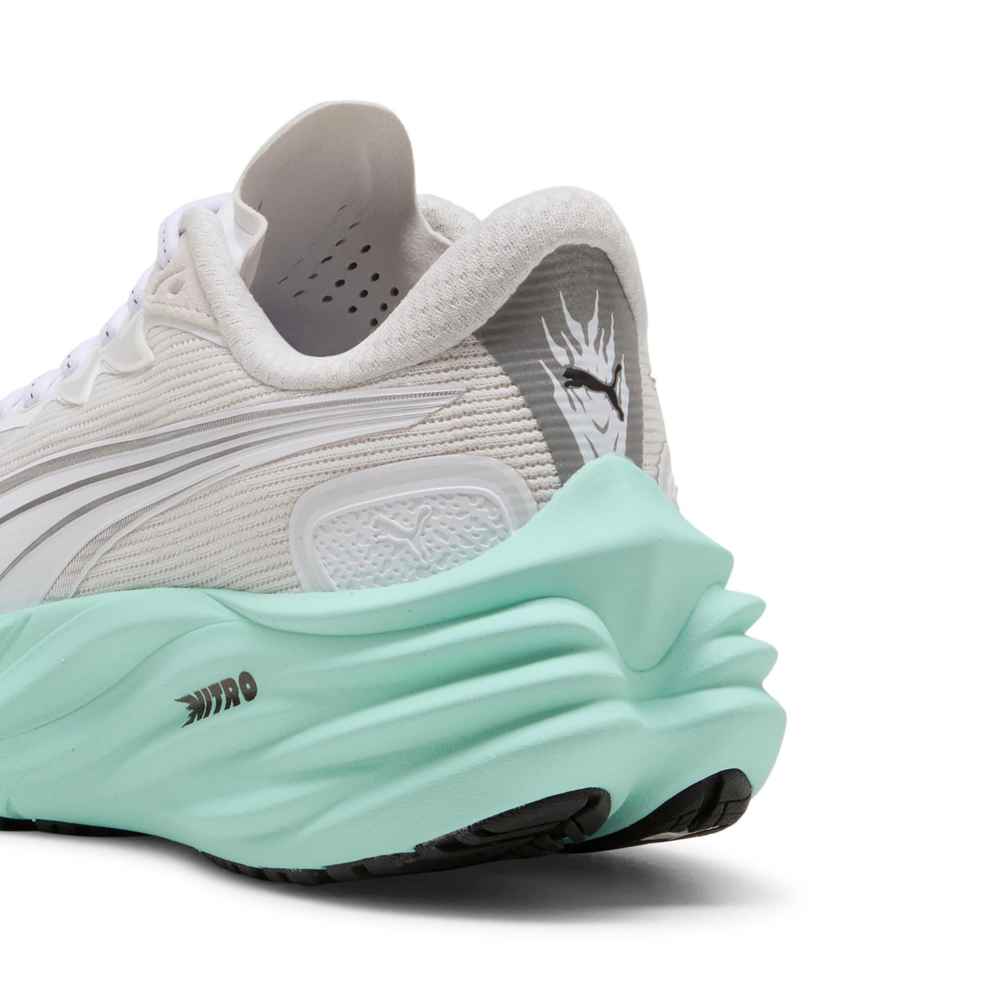 descriptionRunning feels different for everyone – and that's exactly how it should be. Whether you're chasing a personal record or just chasing the feeling, Velocity 4 is built to move with you. Any runner, any time, any distance, it can withstand, deliver, and exceed expectations. Our lightest Velocity yet, it features a full-length NITROFOAM™ midsole, improved breathability thanks to new mesh on the upper, and a PUMAGRIP outsole for the best traction in the game.Style: 311141_05Color: PUMA White-Mint Meltfeatures & benefitsBREATHABILITY: Premium engineered knit material engineered for breathability and stretch, reinforced with PWRTAPE for durability and lockdownNITROFOAM™: Innovative nitrogen-infused foam technology that uses premium raw materials to provide maximum energy returnPUMAGRIP: Outsole is made of durable rubber compound for multi-surface tractionThe upper of the shoes is made with at least 30% recycled materials.detailsFit: RegularToe type: RoundedFastener: LacesHeel type: FlatHeel-to-toe drop: 10mmStack height 36mm / 26mmRecommended for: neutral pronatorsmaterials & careMaterial informationSockliner: 100% TextileOutsole: 100% RubberUpper: 59.73% Textile, 37.40% Synthetic, 2.87% Leather - cowLining: 100% Textile