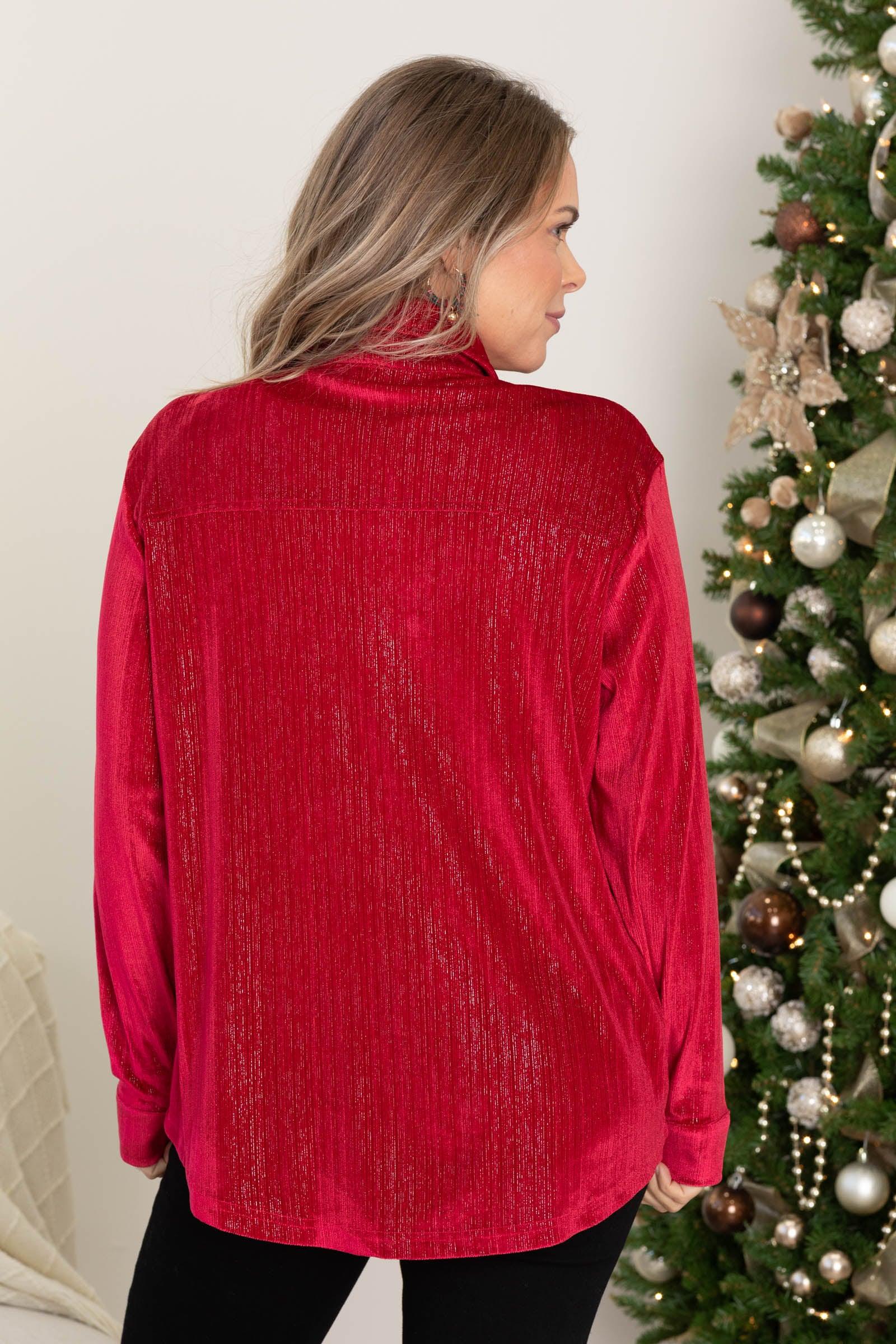 Product Details Colors: Navy, Silver/ Red, Silver Print: Velvet Neckline: Button Down Sleeve: Long Sleeve Hemline: Round Brand: Grace+Emma Material and Care 92% Polyester 8% Spandex Machine Wash Cold Hang/ Line Dry Size and Fit Small: Bust 42" Waist 42" Length 27.5"/28" Medium: Bust 44" Waist 44" Length 28"/28.5" Large: Bust 46" Waist 46" Length 28.5"/29" X Large: Bust 50" Waist 50" Length 29"/29.5" 2X Large: Bust 54" Waist 54" Length 29.5"/30" 3X Large: Bust 58" Waist 58" Length 30"/31" Erica is 5’7” and wearing her true size small