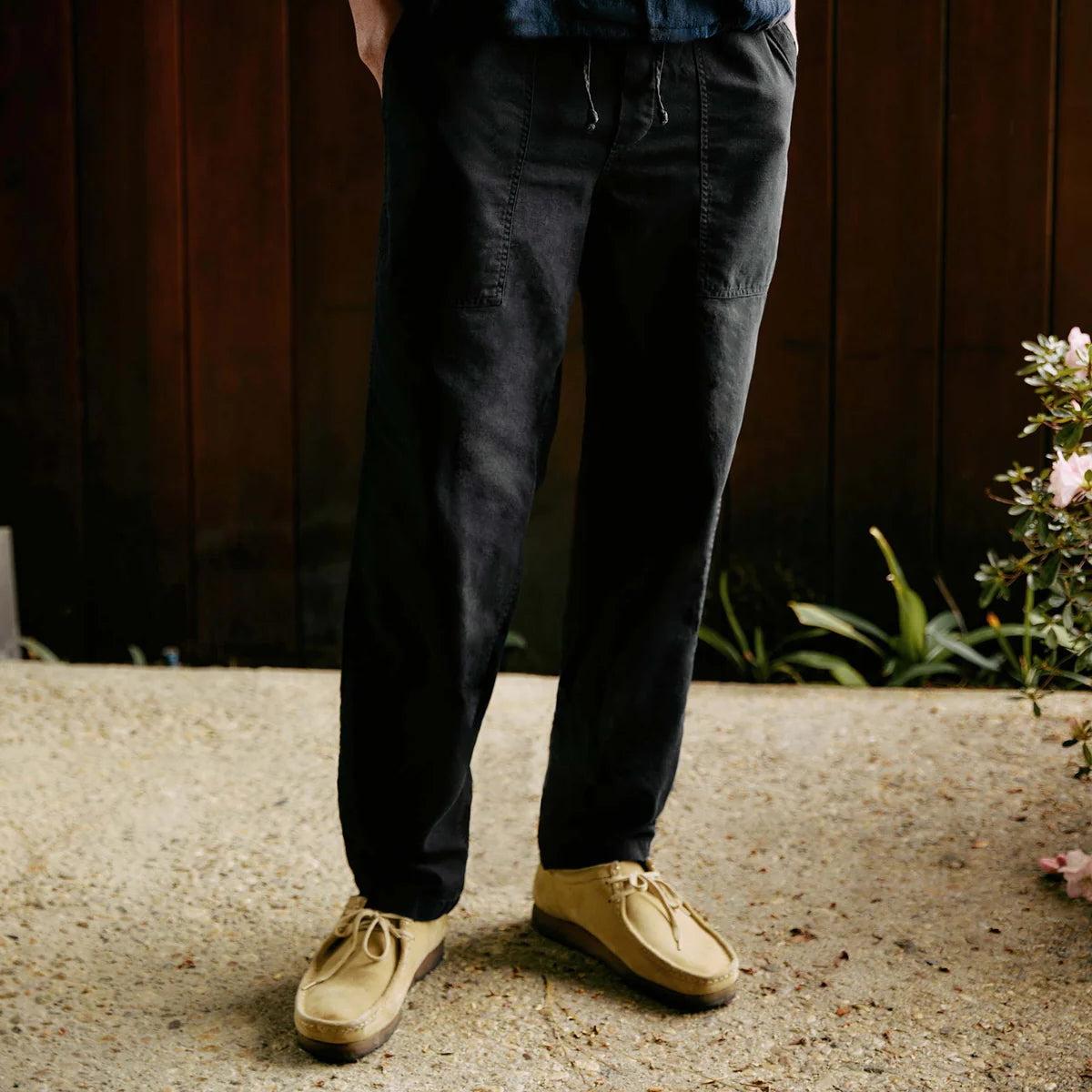 The Ventura Chore Pant from Imogene + Willie is constructed right here in the USA from light-yet-substantial 7oz, 100% cotton duck canvas that’s been stonewashed for a lived in look and feel from the first wear. Their most versatile pant to date and perfect for year round wear, they have a perfectly relaxed fit and come with a pair of front patch pockets, a single back patch pocket and an elasticated waistband for a comfortable finish. Lightweight 7oz cotton duck canvas Stonewashed for a soft, comfortable finish Elasticated waistband with drawstring Two front patch pockets Single back pocket Perfectly relaxed straight leg fit We recommend taking your normal size Made in USAMaterials: 100% cotton The following measurements are for size Medium: Waist: 30” | Inseam: 30” | Thigh: 13” | Leg opening: 16” | Rise: 13”
