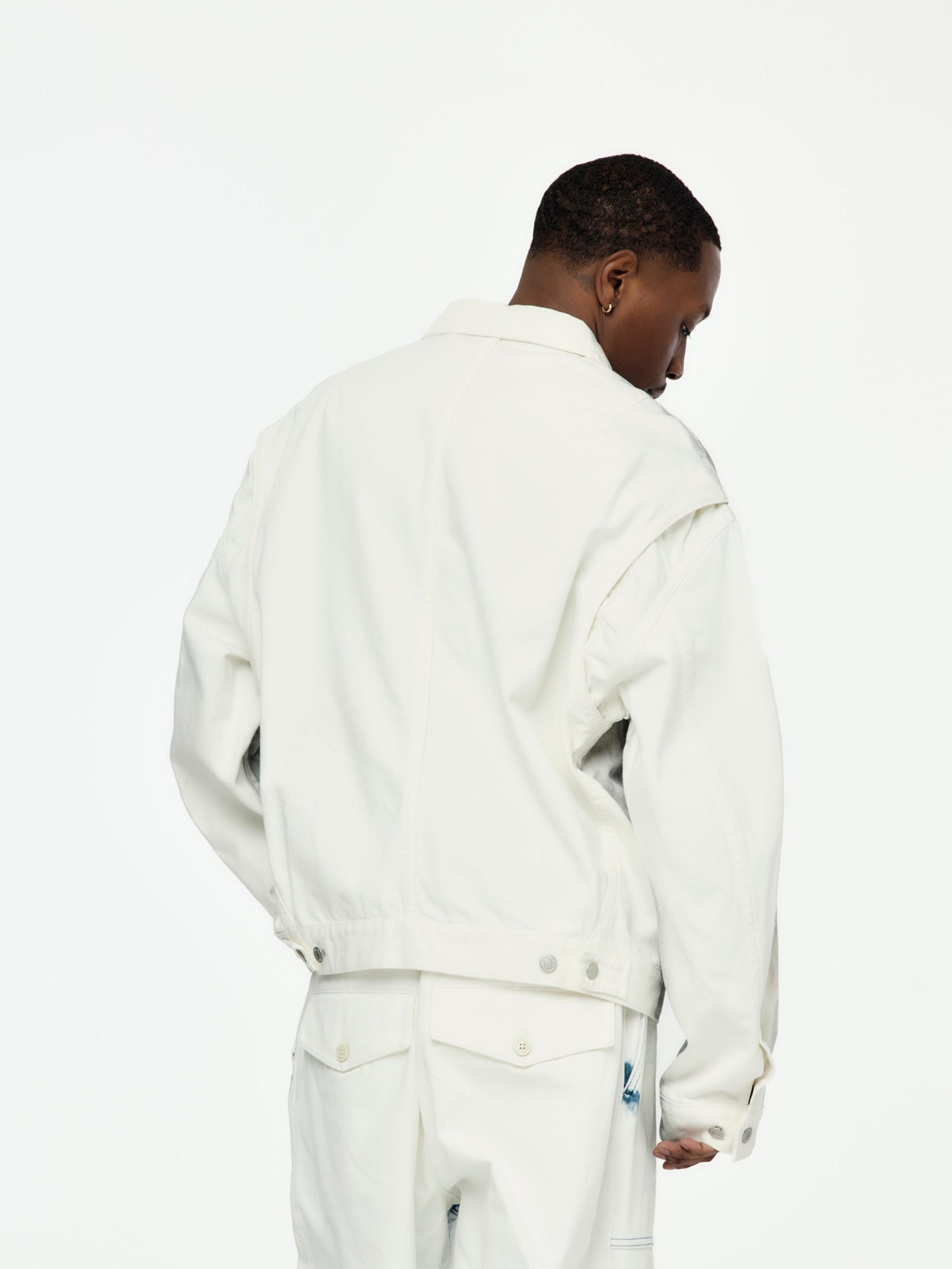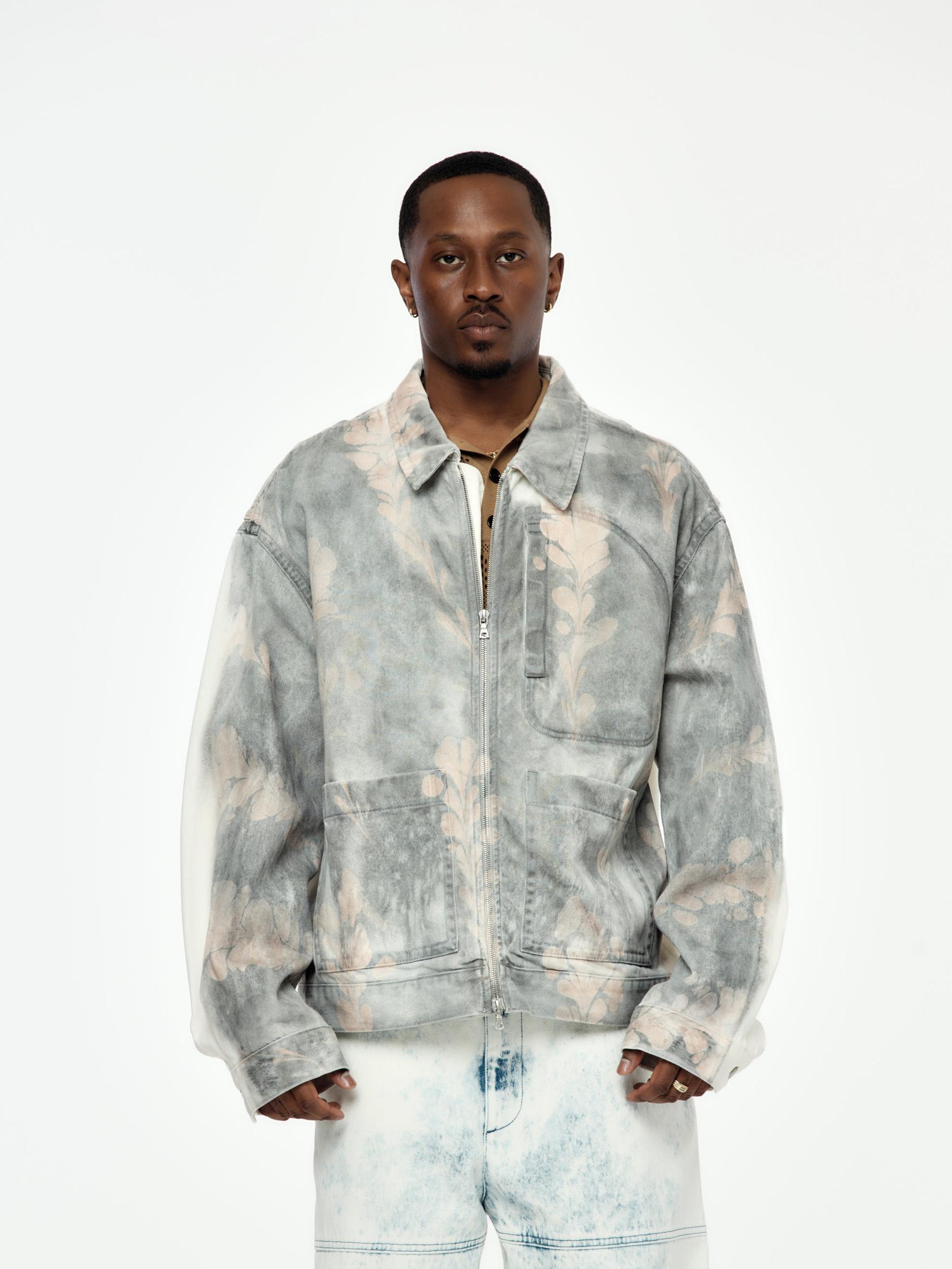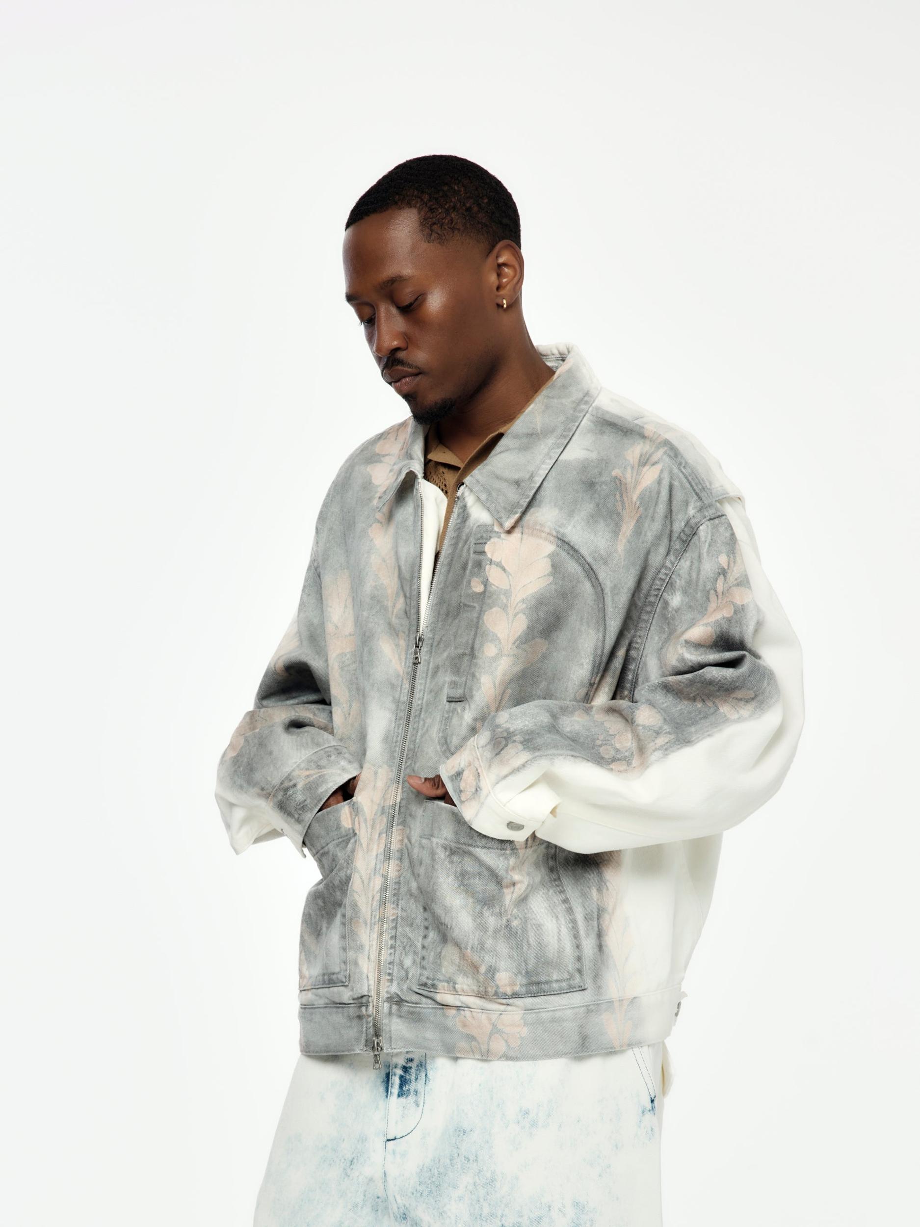 This printed jacket disrupts tradition. “Dessin D” refers to its internal archive print — layered textures, dreamlike palettes, and photo transfer techniques. Cropped fit with front zip closure and lightweight fabric. SKU: 251-020550-1556-978
