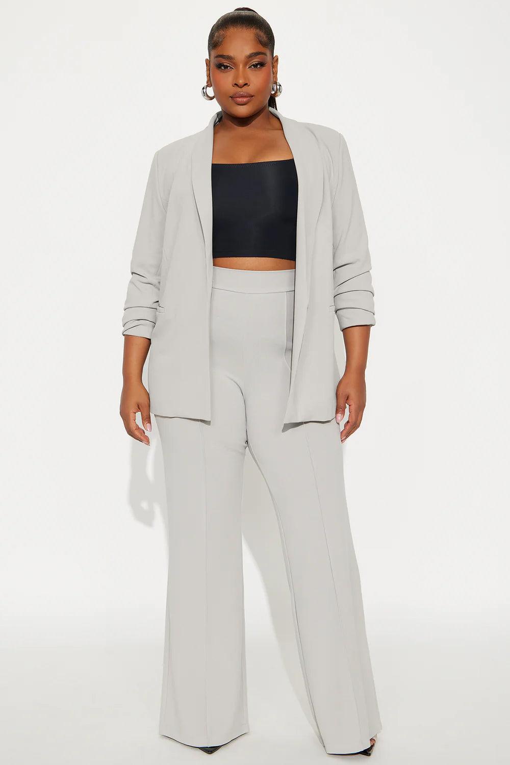 Available In Black, Burgundy, Charcoal, Chocolate, Grey, Hunter Green, Ivory, Jade, Lavender, Light Grey, Navy, Olive 1, Pink, Plum, Raspberry, Red, Rose, Royal, Rust, Sage, Taupe And White. Crepe Knit High Rise Pant 35 Inseam. Based On A Size Small Pintuck On Front Back Hidden Zipper Pair With "The Celine Blazer" Self: 95% Polyester 5% Spandex Imported