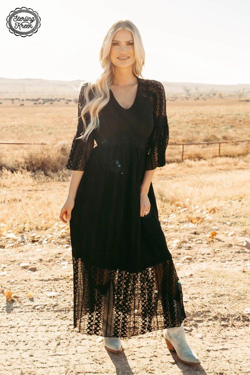 Make them swoon in this gorgeous Victorian Lace Maxi Dress! Featuring beautiful black crochet lace, this stunning dress will keep you feeling like royalty all night long. Perfect for a fancy night out or a casual stroll, they won't be able to help but admire you! So put on your finest and get ready to strut your stuff! Model is wearing an XS and is 5'7" 95% POLAMIDE 5% SPANDEX LINING: 100% POLYESTER SIZE CHEST LENGTH SLEEVE WIDTH SLEEVE LENGTH XS 14.5" 52" 10.5" 21" S 15.5" 52" 11" 21" M 17" 52" 11.5" 21" L 18" 52" 12" 21.5" XL 19" 53" 12" 23" 2X 20" 53" 12.5" 23" 3X 21" 53" 12.5" 23"