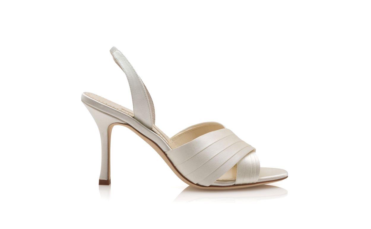 VIERASAN Light Cream Satin Pleated Detail Slingback Sandals