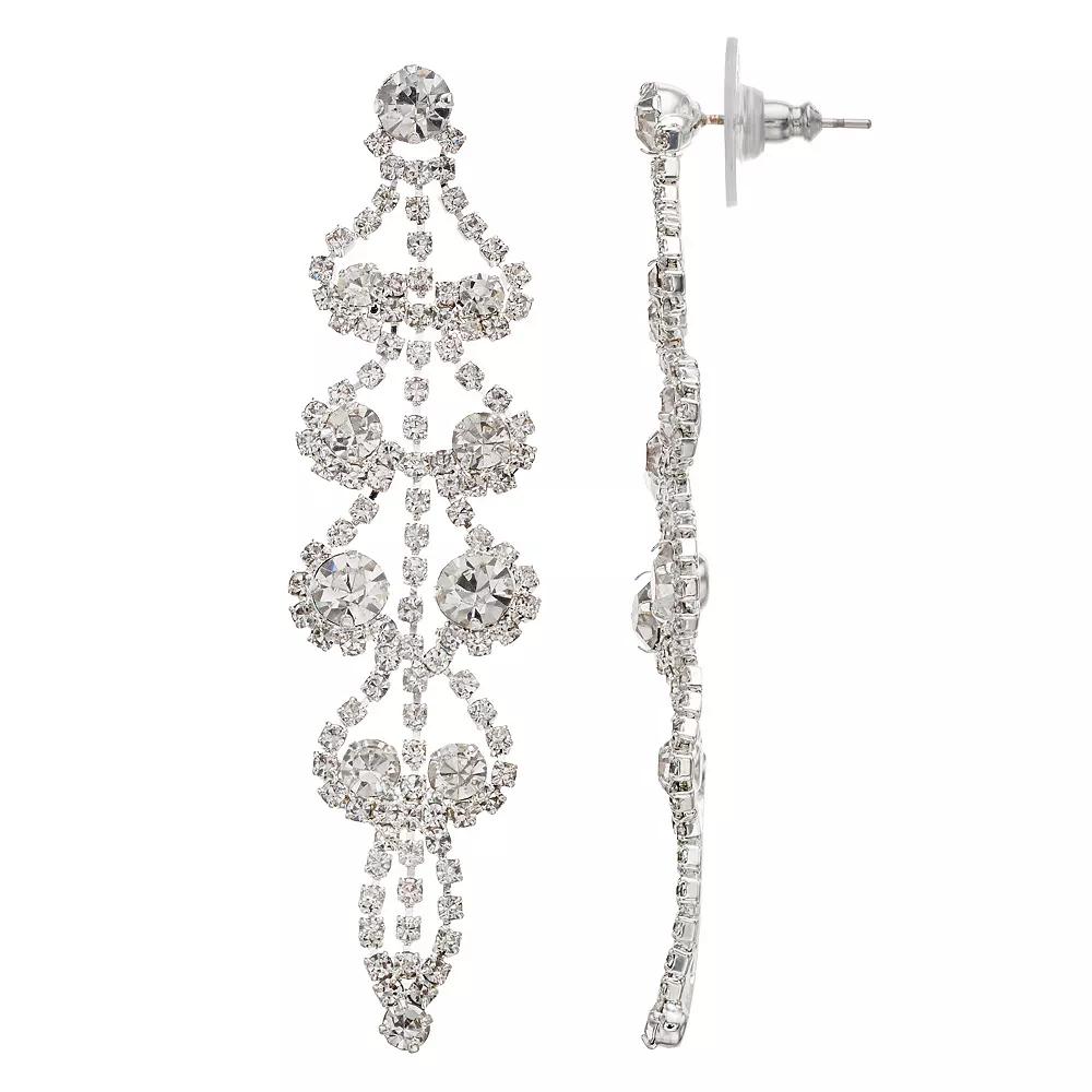 Add showstopping style to your look with these shimmering linear drop earrings. Add showstopping style to your look with these shimmering linear drop earrings. EARRING DETAILS Length: 2 5/8 in. Backings: post Metal: brass Plating: silver tone Nickel free Not appropriate for children 14 years old and younger. Size: One Size. Gender: female. Age Group: adult.