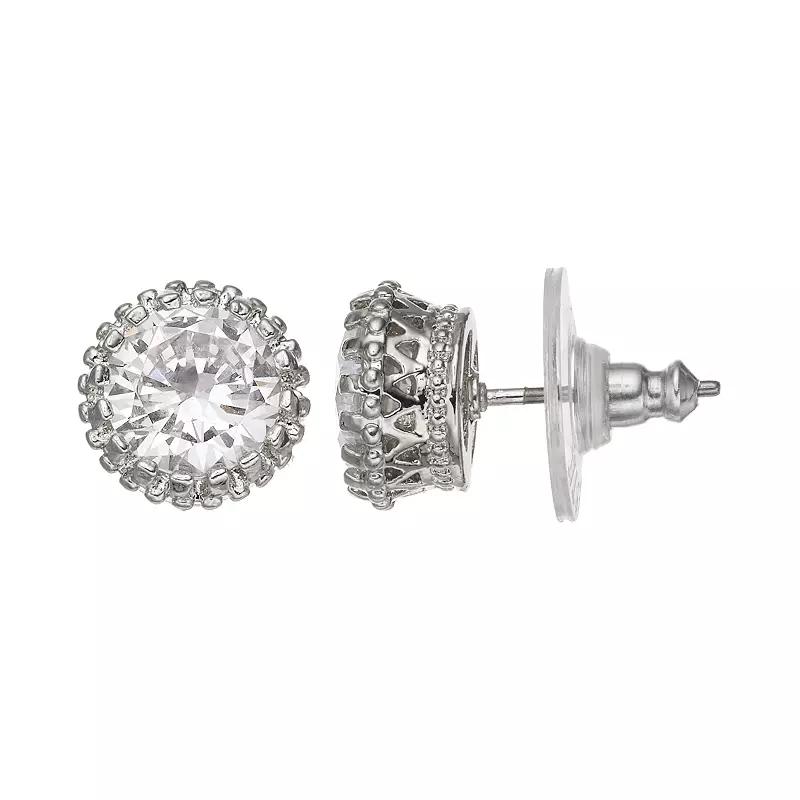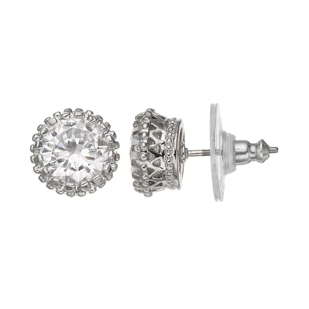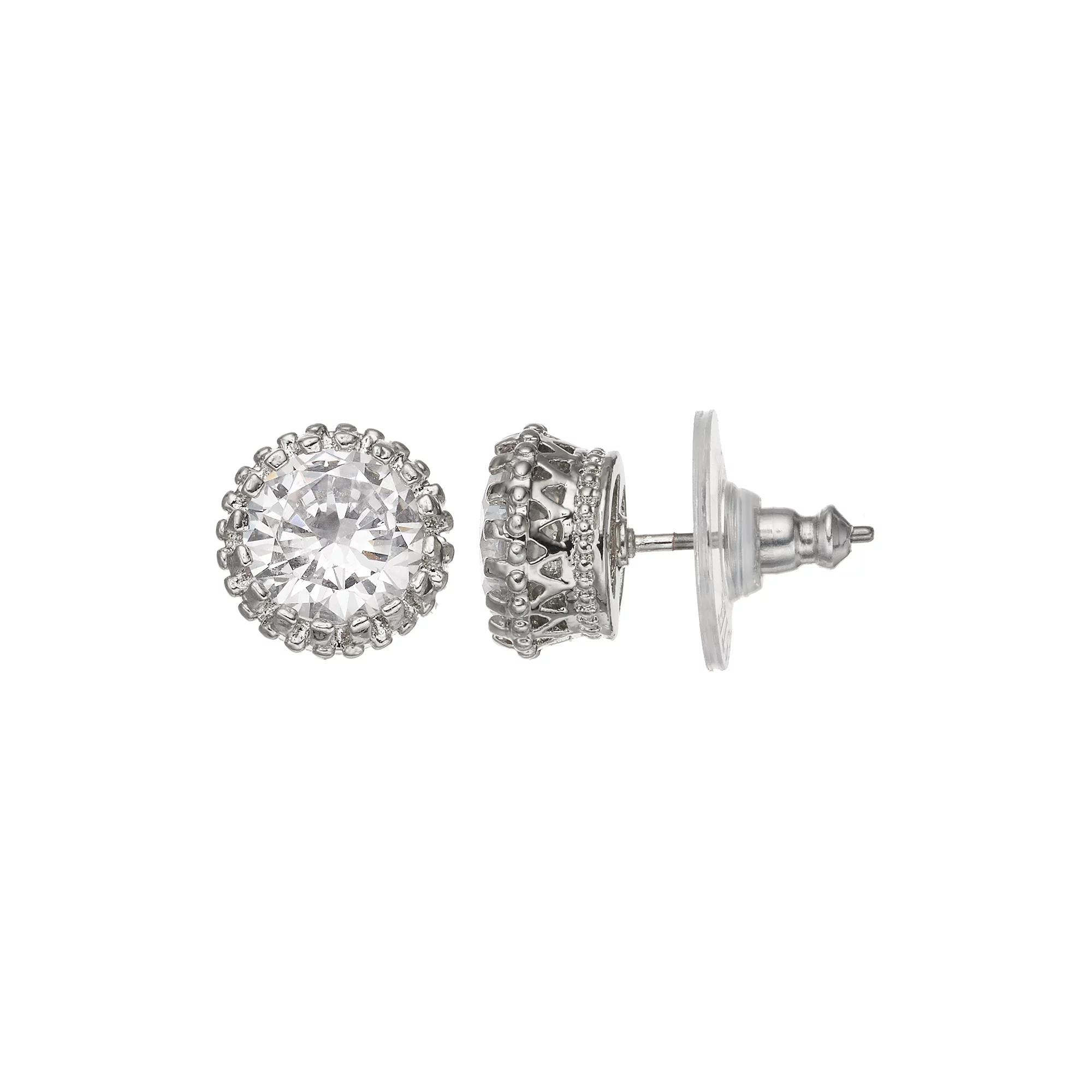 These crown stud earrings are a stunning choice. EARRING DETAILS Diameter: .6 in. Backings: post Metal: silver tone Stones: simulated crystal Not appropriate for children 14 years old and younger. Size: One Size. Color: Natural. Gender: female. Age Group: adult.