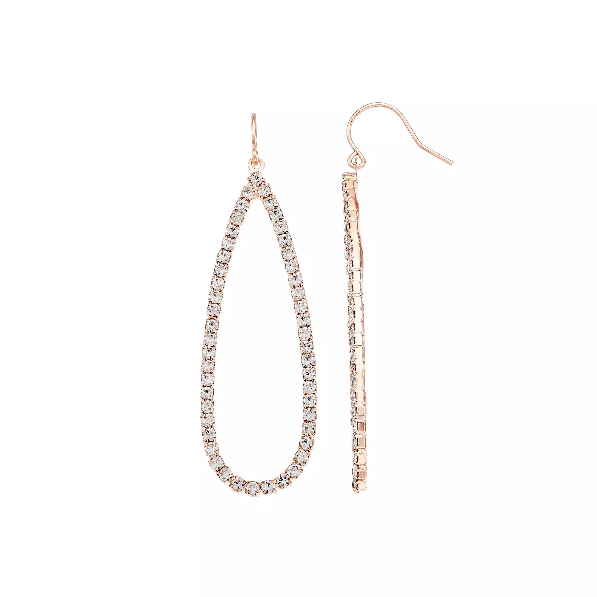Add a touch of elegance to your look with these simulated crystal teardrop earrings.EARRING DETAILSLength: 2.5 in. Backings: fishhookMetal: brassPlating: rose gold toneAdditional details: nickel freeNot appropriate for children 14 years old and younger. Size: One Size. Color: Pink. Gender: female. Age Group: adult.