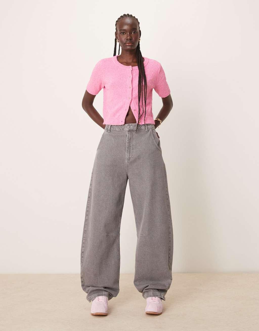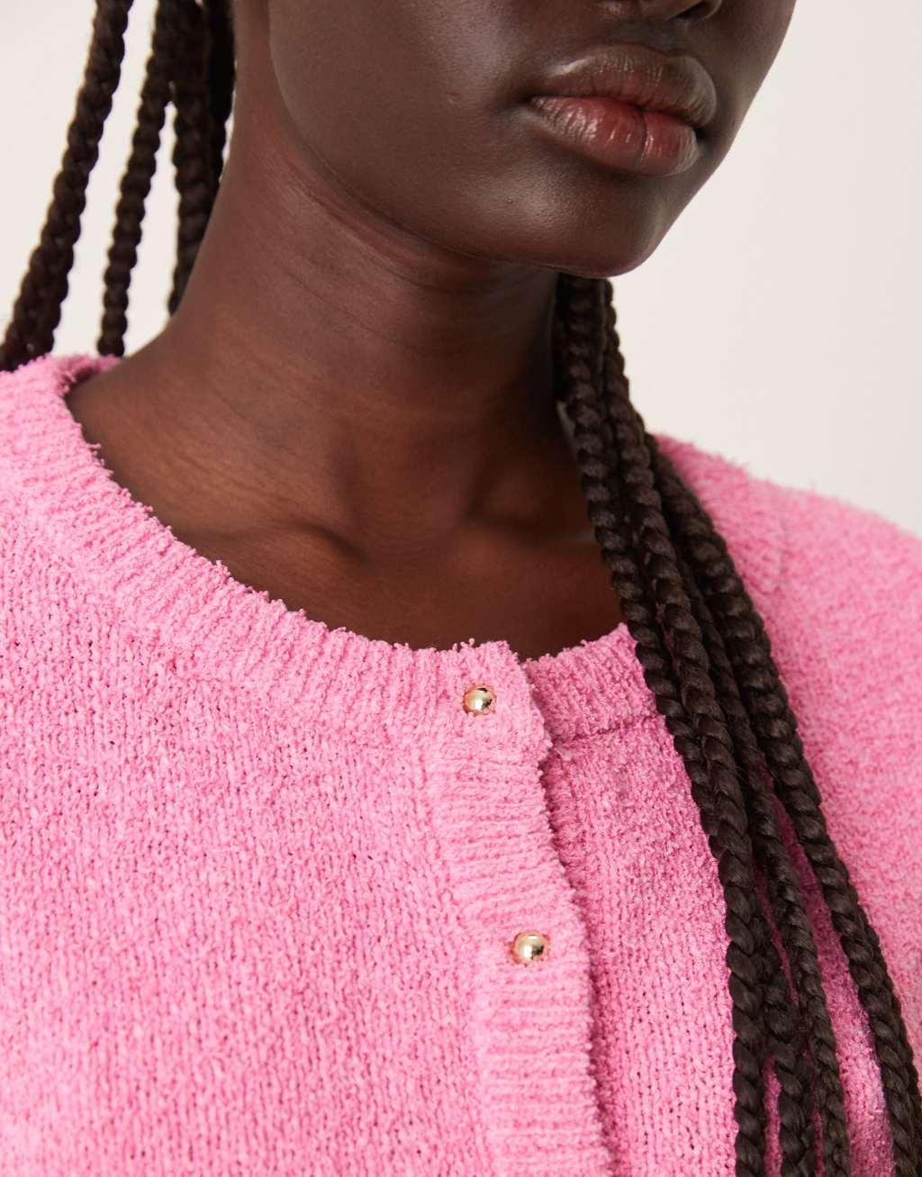 VILA fluffy knit short sleeve cardigan style top in bubblegum pink