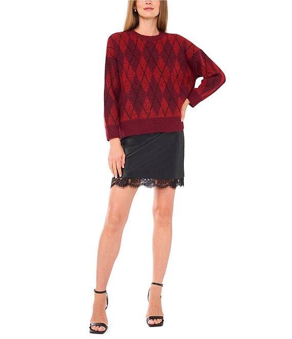 Vince Camuto Knit Argyle Round Neck Long Sleeve Sweater
