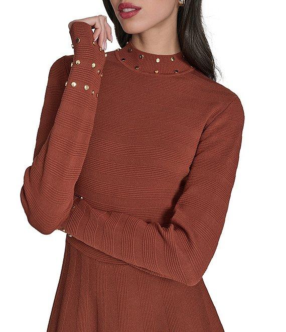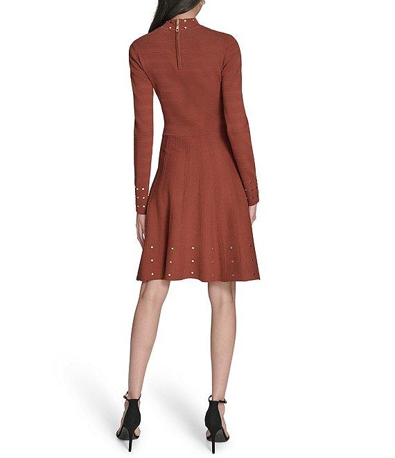 Vince Camuto Long Sleeve Mock Neck Studded Fit And Flare Dress