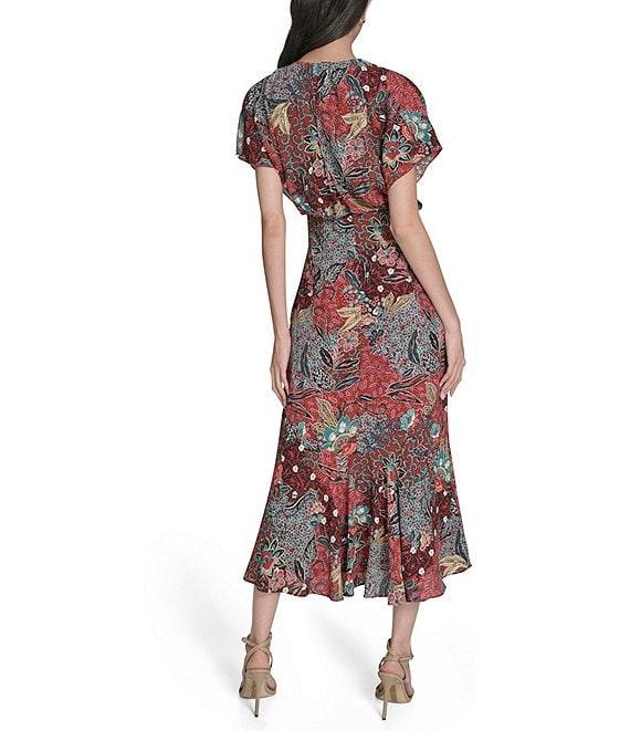 Vince Camuto Paisley Print Boat Neck Cap Sleeve Midi A-Line Dress