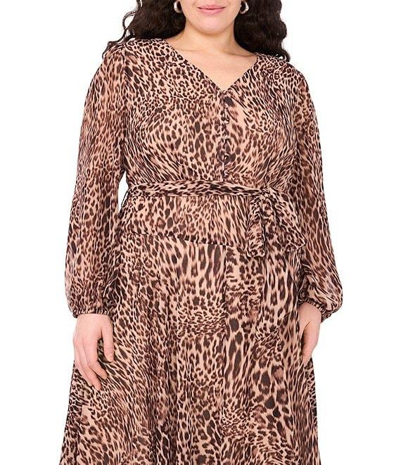 Vince Camuto Plus Size Animal Print Woven V-Neck Long Sleeve Maxi Dress