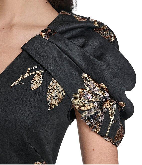 Vince Camuto V-Neck Short Sleeve Sequin Flower Dress