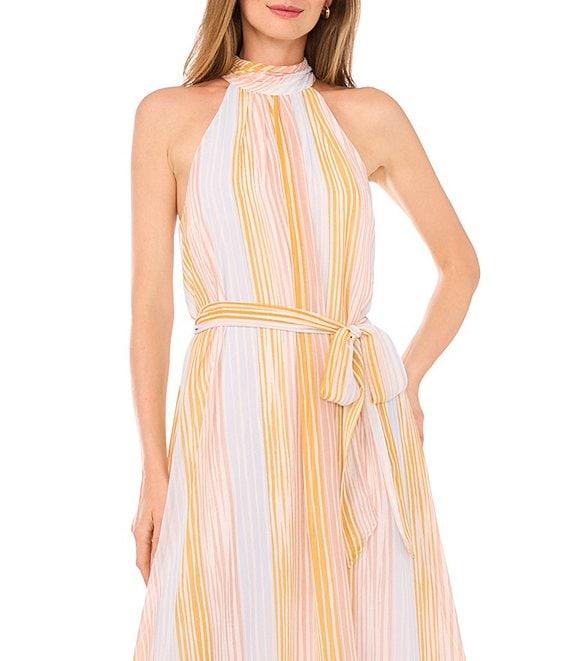 Vince Camuto Woven Halter Neck Sleeveless Striped Maxi Dress