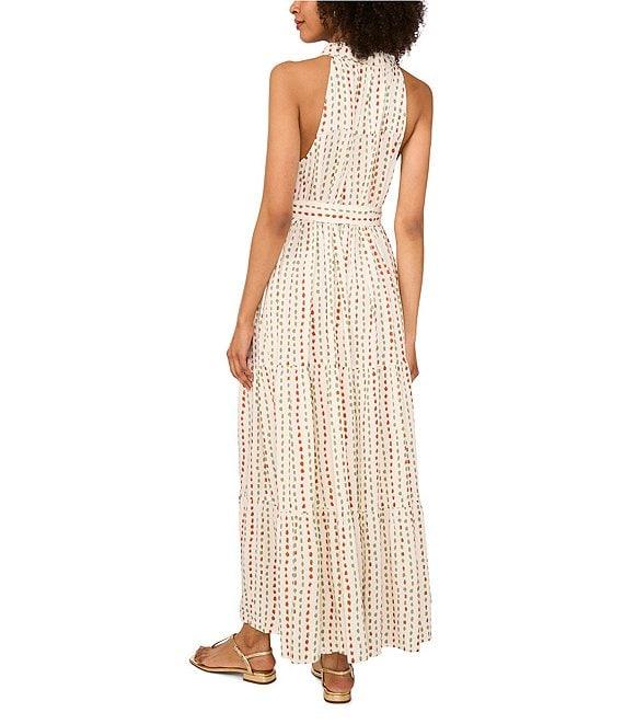 Vince Camuto Woven Printed Collared Sleeveless Belted Printed Shirt Maxi Dress