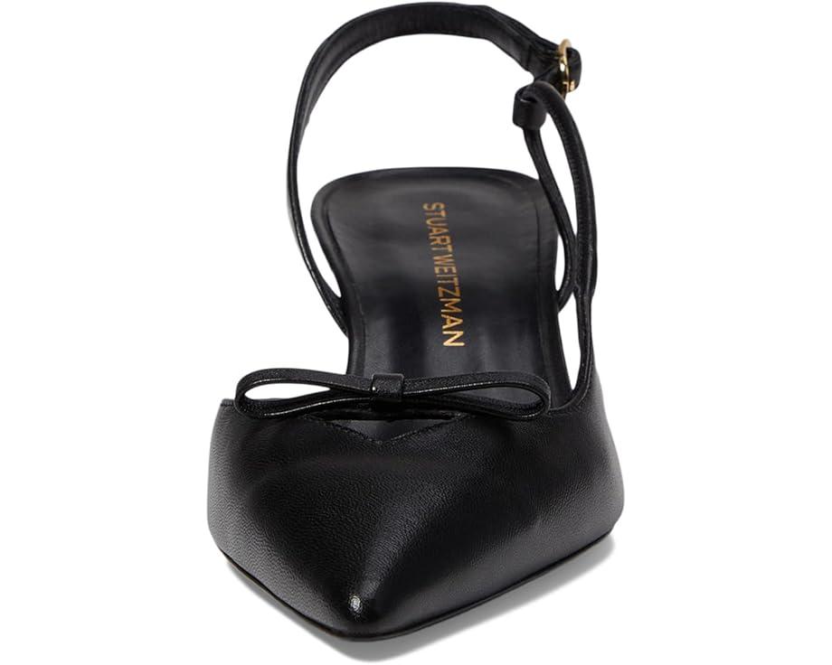Step into timeless elegance with the Stuart Weitzman® Tully 50 Slingback, a refined and versatile shoe that epitomizes sophistication. Featuring a sleek kitten heel and sharp pointed toe, this slingback exudes chic charm. The standout detail is the delicate bow adorning the toe, adding a touch of femininity and charm to the design. The slingback strap with an adjustable buckle closure ensures a secure and personalized fit.
