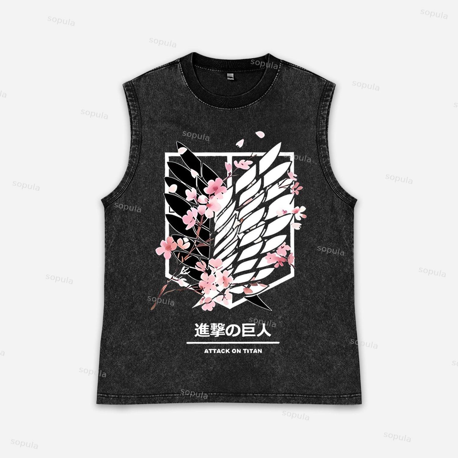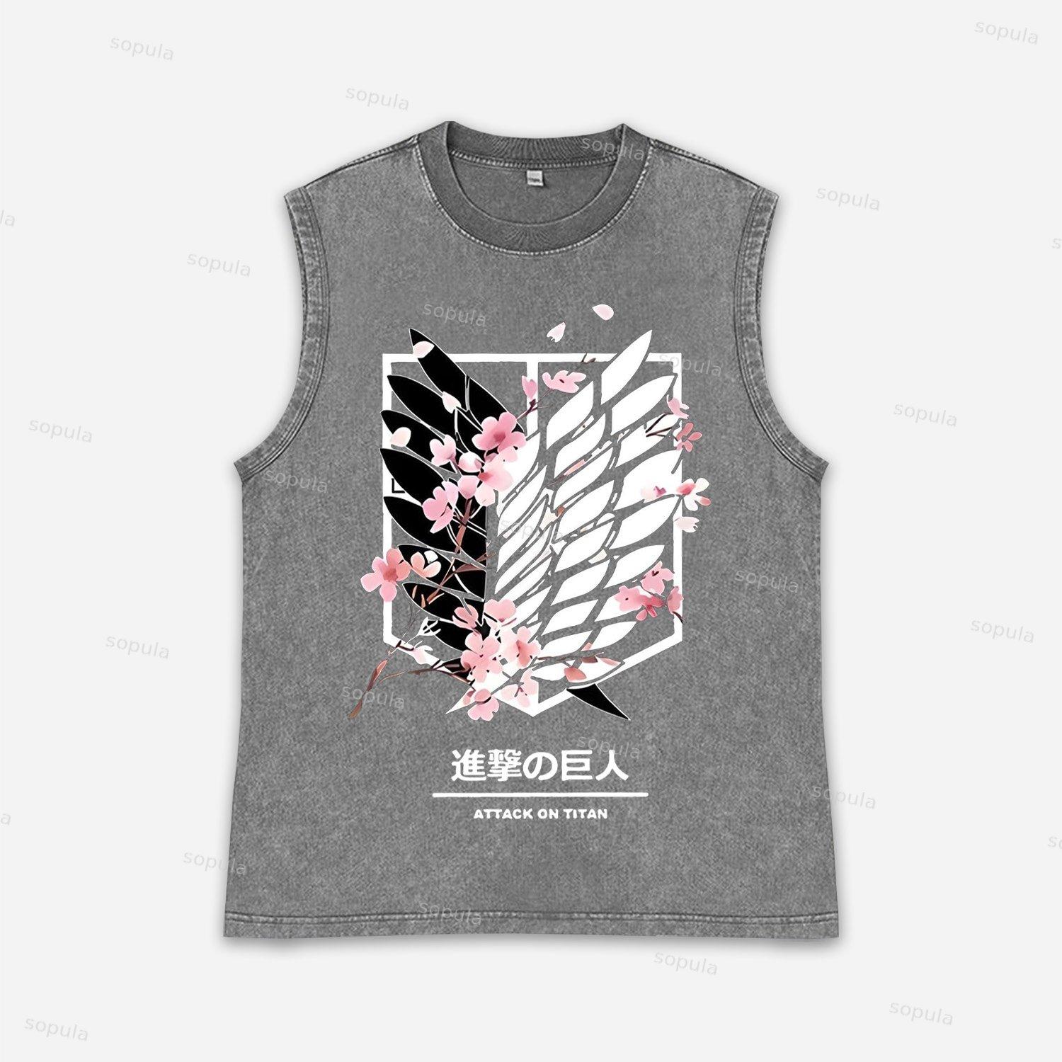 Vintage Japanese Cherry Blossoms Art Graphic Acid Washed Vest