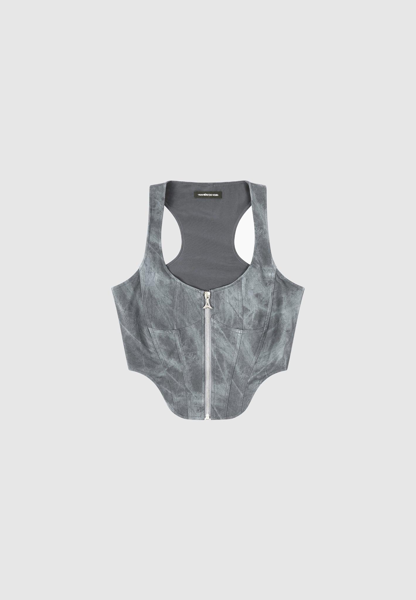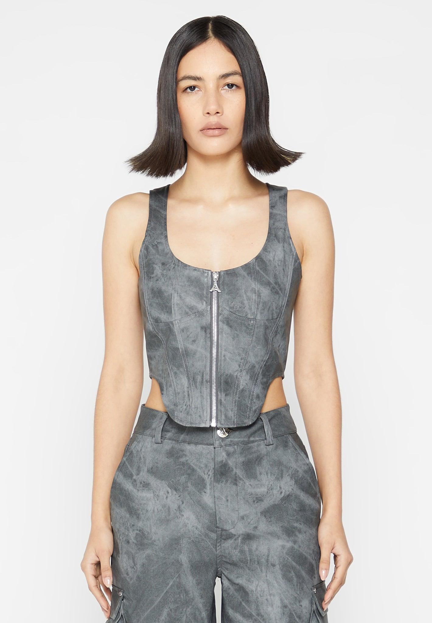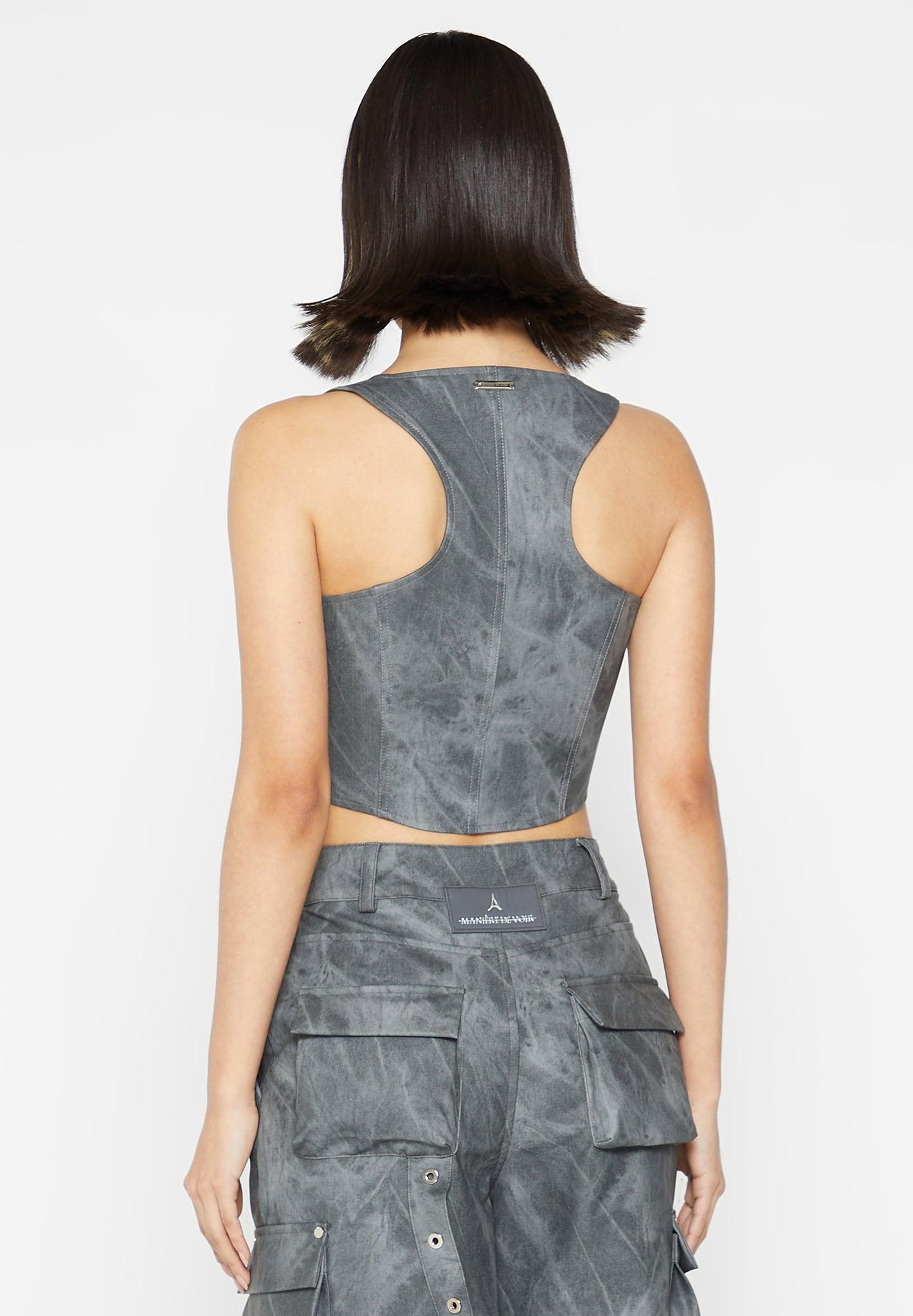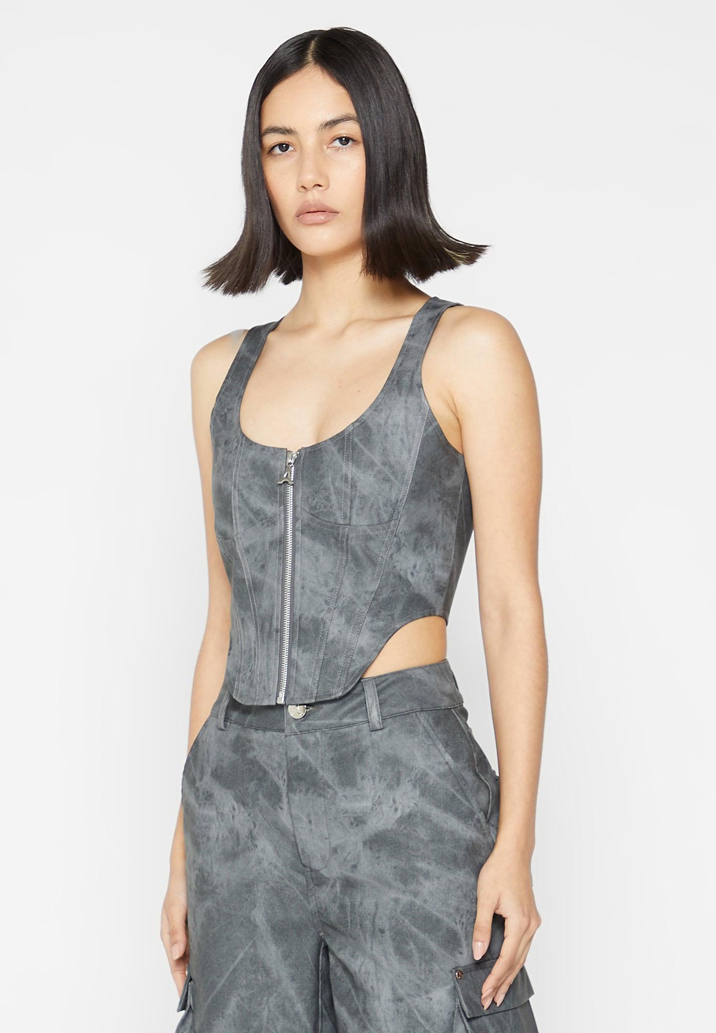 This Vintage Marble Leather Corset Top is a stylish option crafted from vegan leather. Its contemporary corset silhouette and contour features provide superior structure and an instantly-refined look. With its chic washed grey hue and timeless style, this top is sure to become a wardrobe staple. Corset Top Silhouette Vintage Vegan Leather Figure Accentuating Contour Detail Silver Manière De Voir Eiffel Zip Silver Manière De Voir Plaque 60% PU, 40% Viscose / 97% Polyester, 3% ElastaneAlways check the care label for wash instructions.