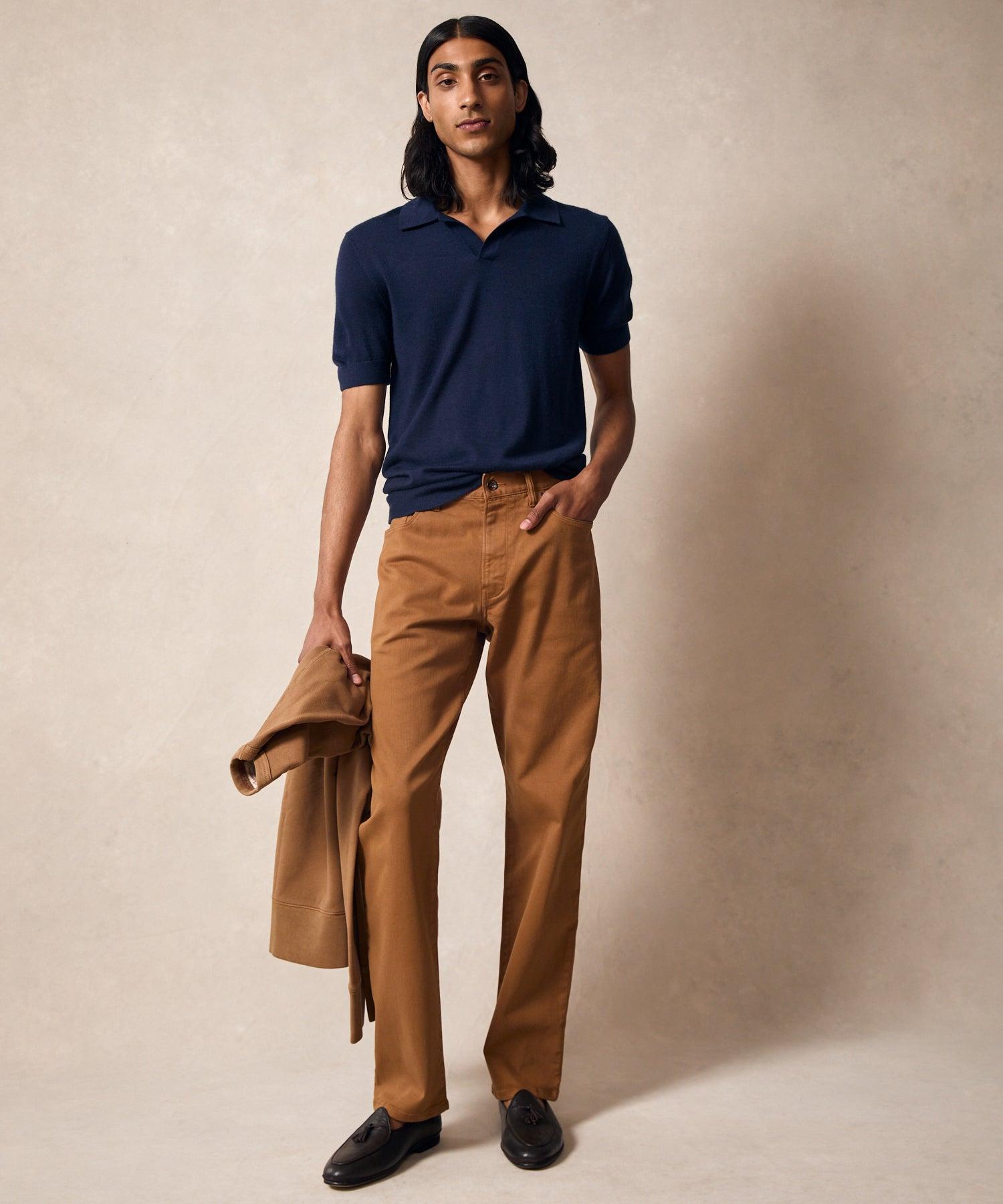 This modern hybrid merges the best features of your favorite denim and your trusty chinos into one truly perfect pair of pants. Our Vintage fit is the Goldilocks between Slim and Relaxed: mid-rise, straight through the leg, totally classic. Crafted from garment-dyed twill with a touch of stretch, the essential 5-Pocket Pant is casual yet elevated, comfy yet polished, and ready for just about anything. 90% Cotton, 8% Polyester, 2% Lycra Vintage Straight Fit Leg Opening (Based on Size 32W): 16.5” Garment-Dyed Classic 5-Pocket Styling Zip Fly Belt Loops Made in China Machine wash cold. Do not bleach. Dry flat, iron low. Style JE417785