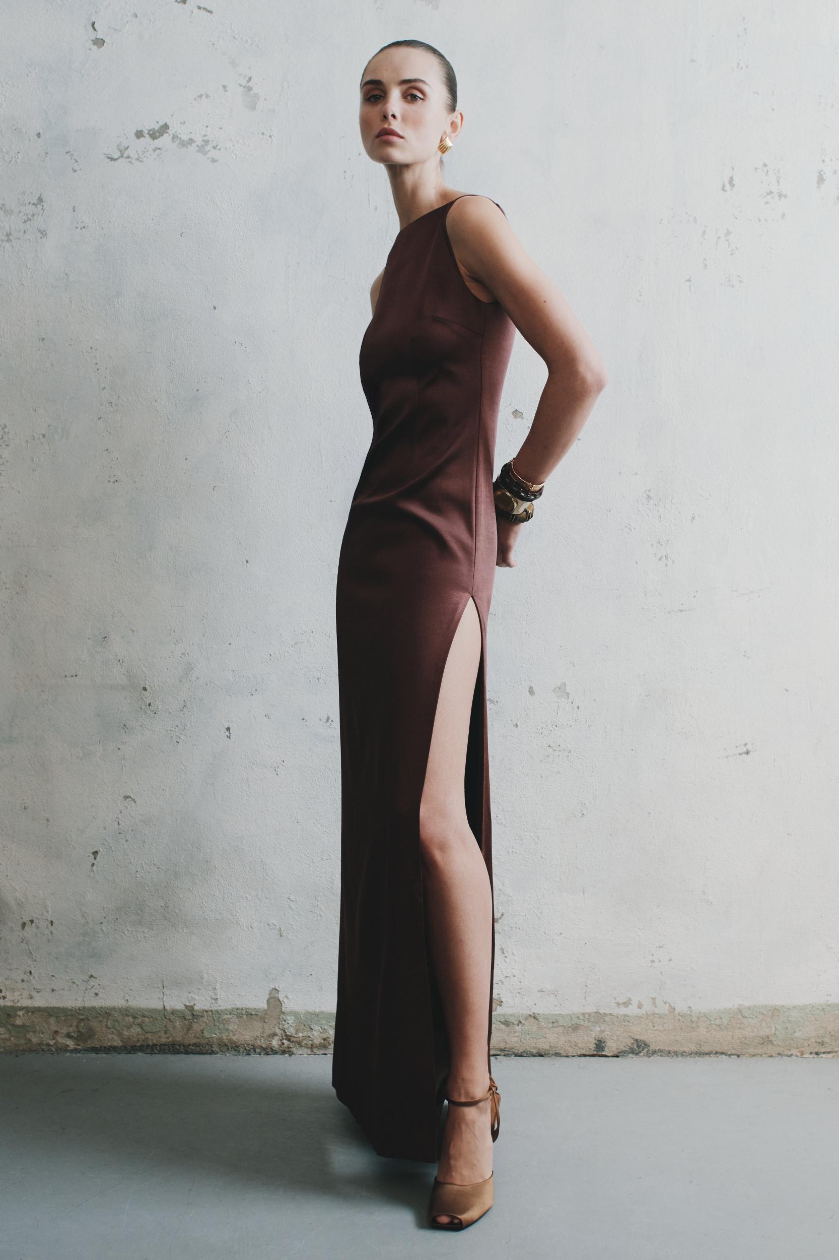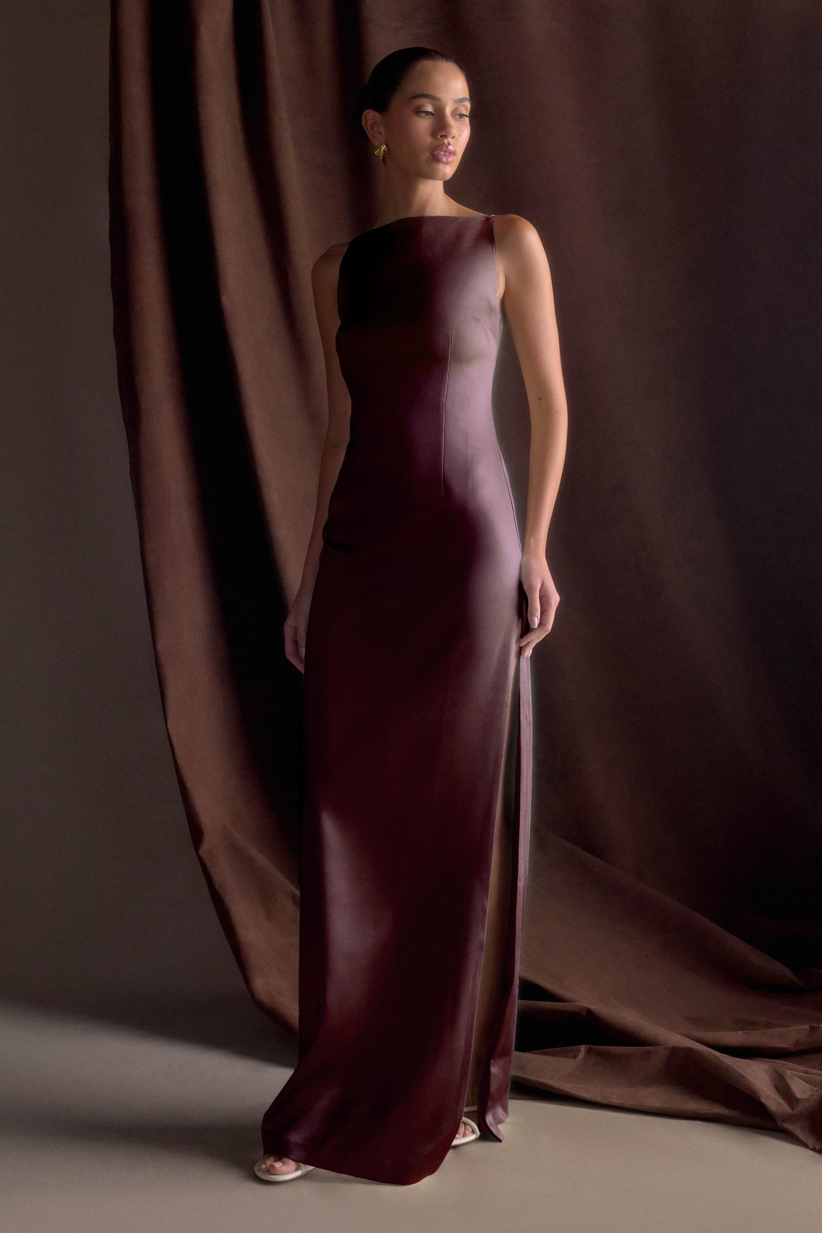 For the ones who love you most. The VIOLET Sleeveless Satin Maxi Dress is the epitome of understated glamour. Designed with a sleek, fitted bodice that contours the frame, this silhouette flows effortlessly into a straight-cut skirt for a refined finish. A side leg split adds a touch of allure, creating movement with every step. Finished with a discreet back zip for a seamless fit, this dress is perfect for elegant soirées, formal occasions, or modern bridal celebrations.