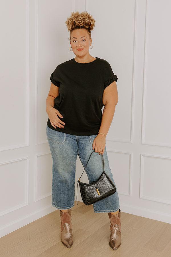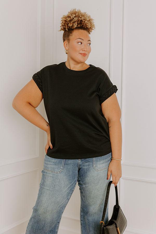- Put a stylish twist on classic casual style with this adorable top! Its relaxed fit and braided sleeve detailing make it the perfect combo of laid-back energy and trendy fashion. Keep it cute with this darling piece! - Unlined, lightweight material - A crew cut neckline - Short sleeves with braided cuffs - A relaxed silhouette that ends in a straight hemline