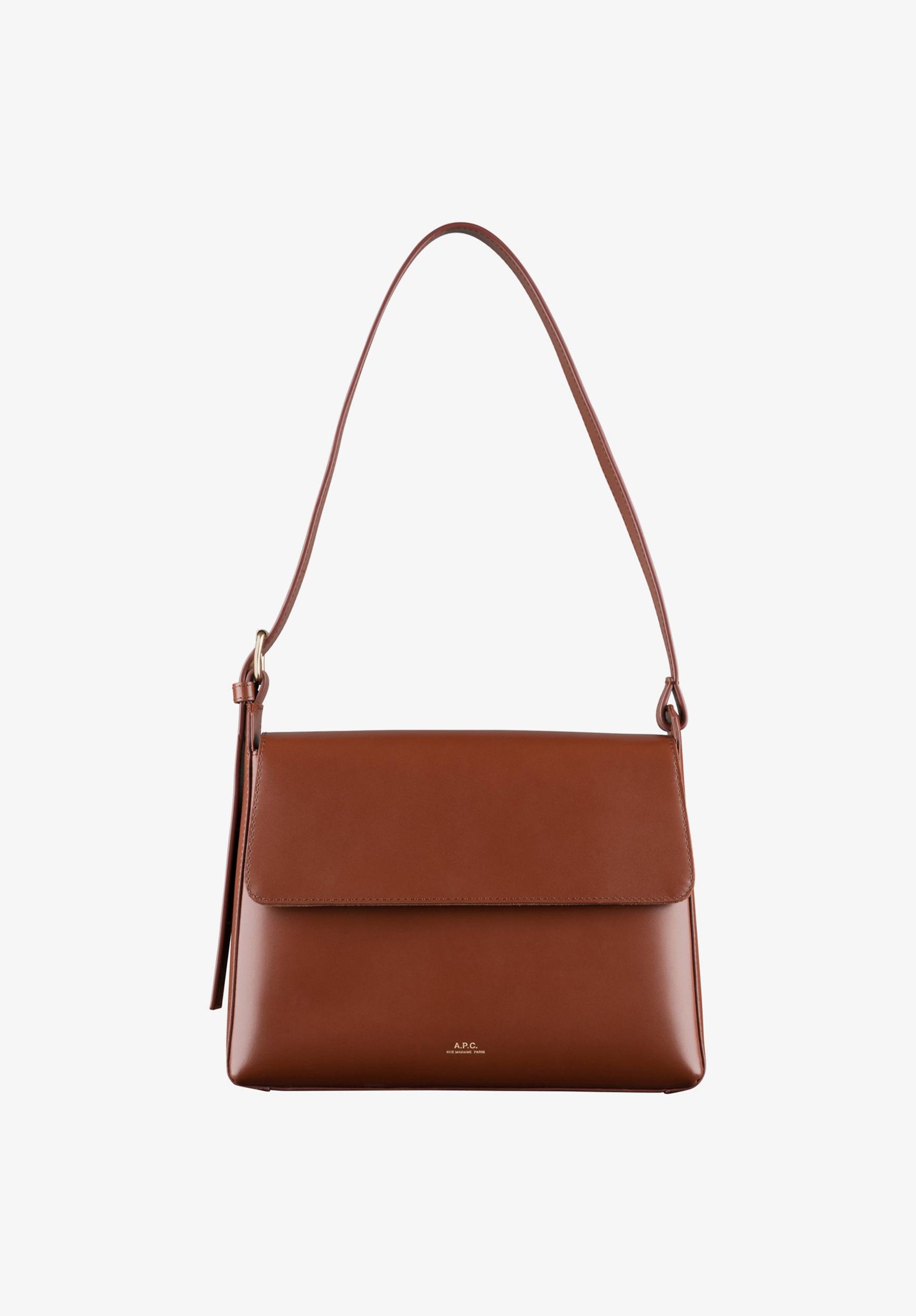 - Smooth leather bag. - Can be carried on the shoulder or by hand. - Adjustable leather strap adjusts with a goldtone metal buckle. - Magnetic closure. - One interior pocket. - Cotton lining. - Embossed goldtone 'A.P.C. Rue Madame Paris' logo.