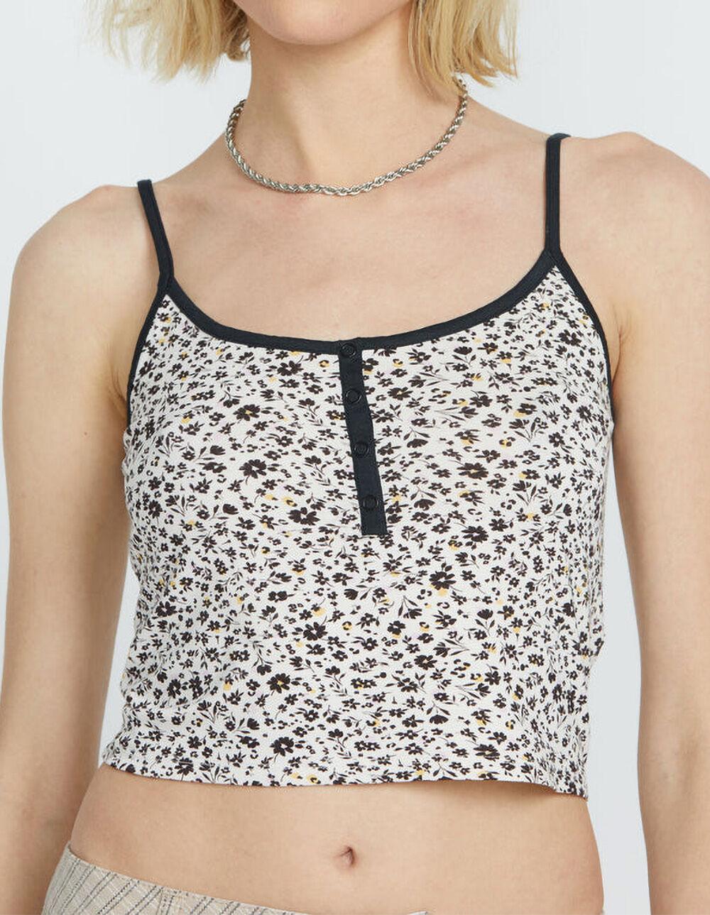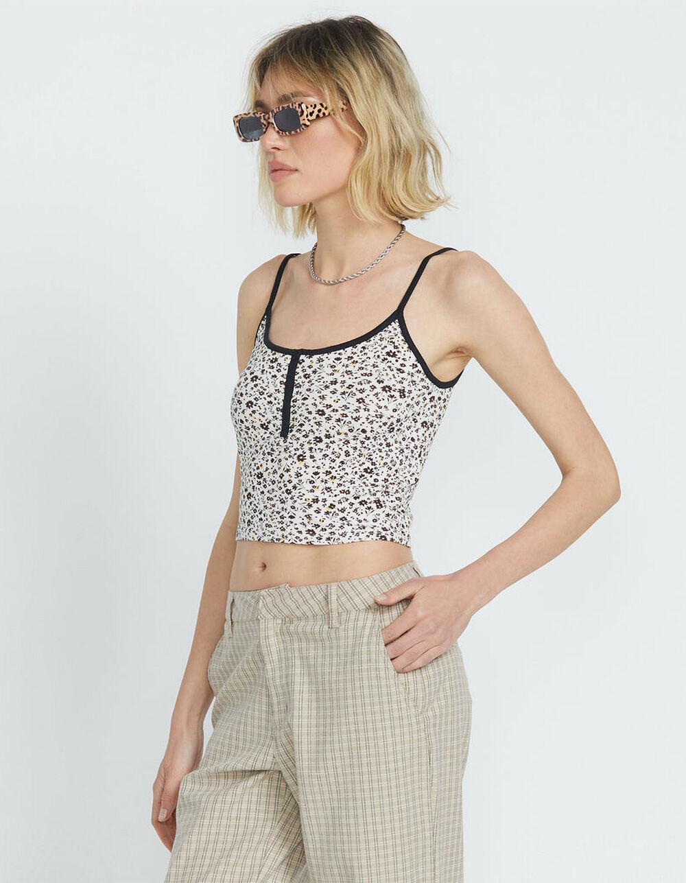 Volcom This Buds 4 U Cami. Slay casual days in the striped This Buds 4 U Cami. The slim tank fuses style with utilitarian edge via its henley placket, adjustable skinny straps, and an allover print. Henley placket with baby snap closure. Skinny straps with metal ring and adjusters. 20" HPS. 65% Polyester 30% Viscose 5% Elastane. Imported.