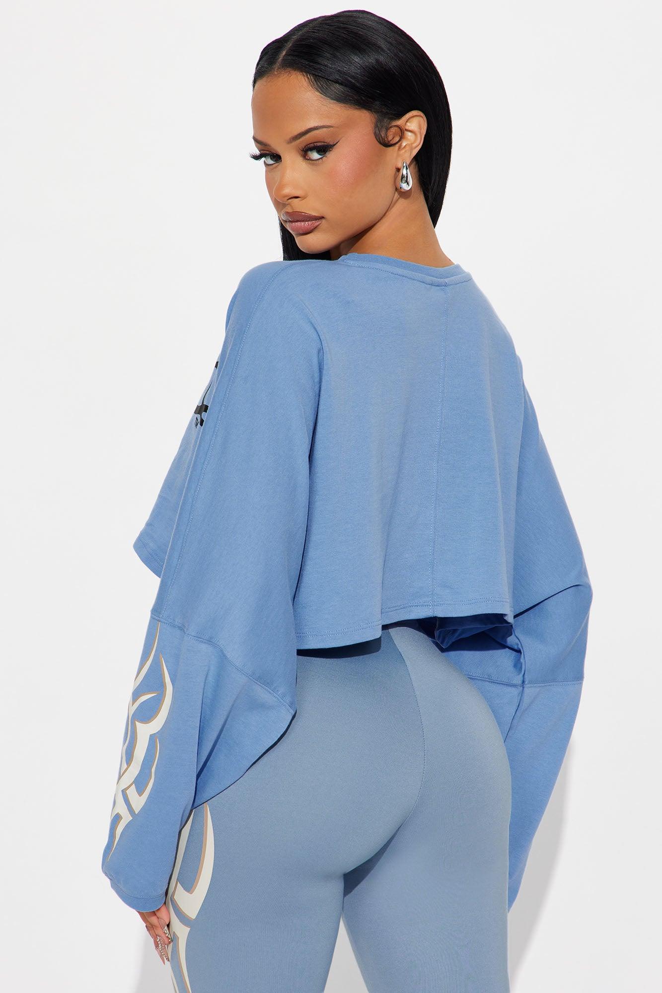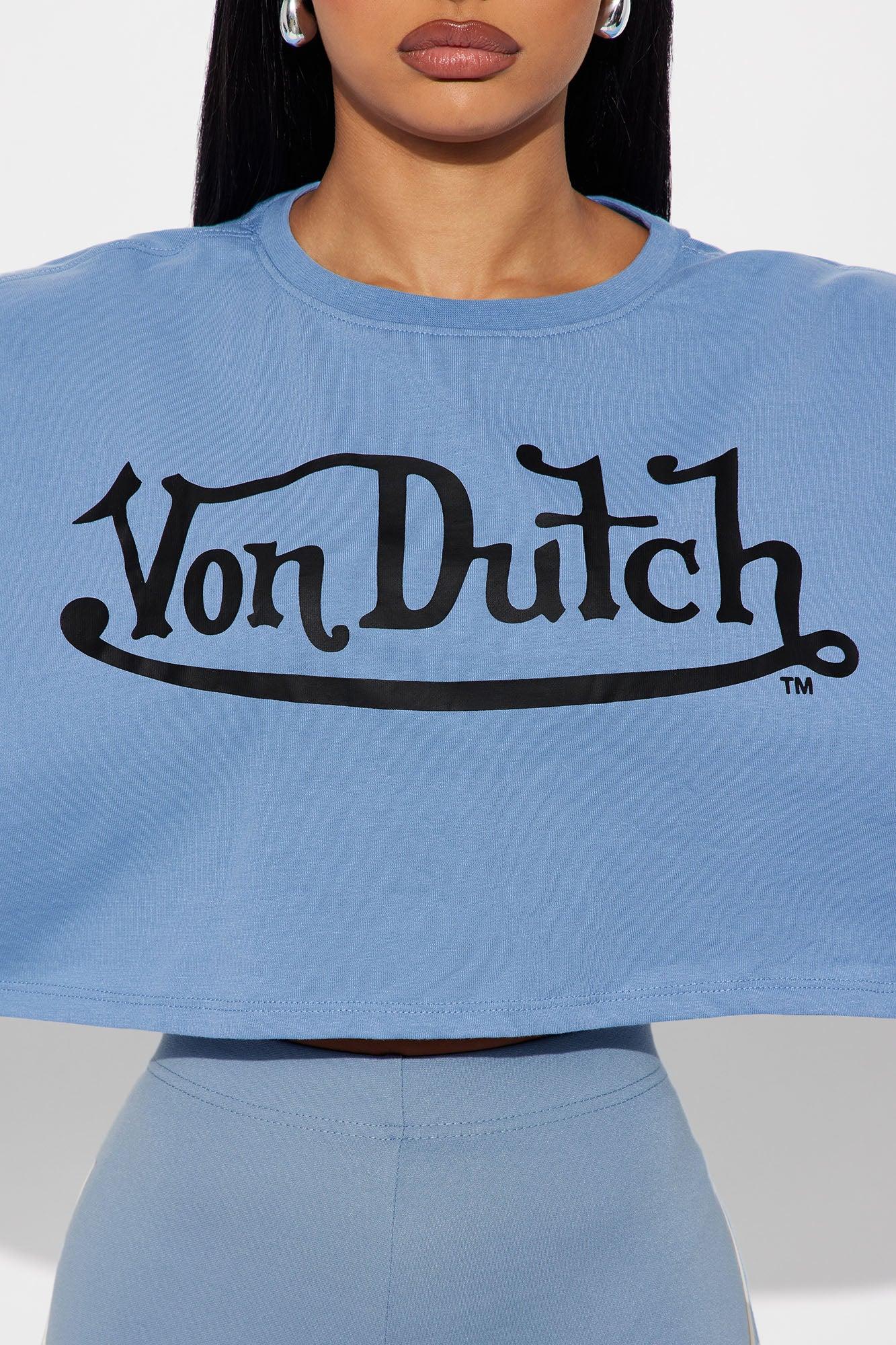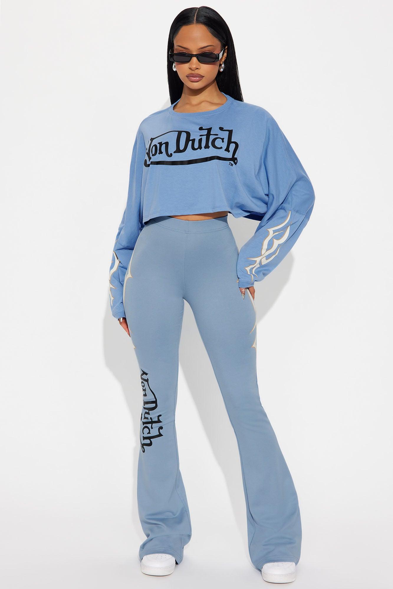 Available In Blue. Long Sleeve Cropped Crew Neck Von Dutch Graphic Pair With "Von Dutch Heatless Waves Pants" Disclaimer: Due To The Printing Process A Difference In Saturation May Occur. Each Garment Is Unique. Self: 60% Cotton 40% Polyester Imported