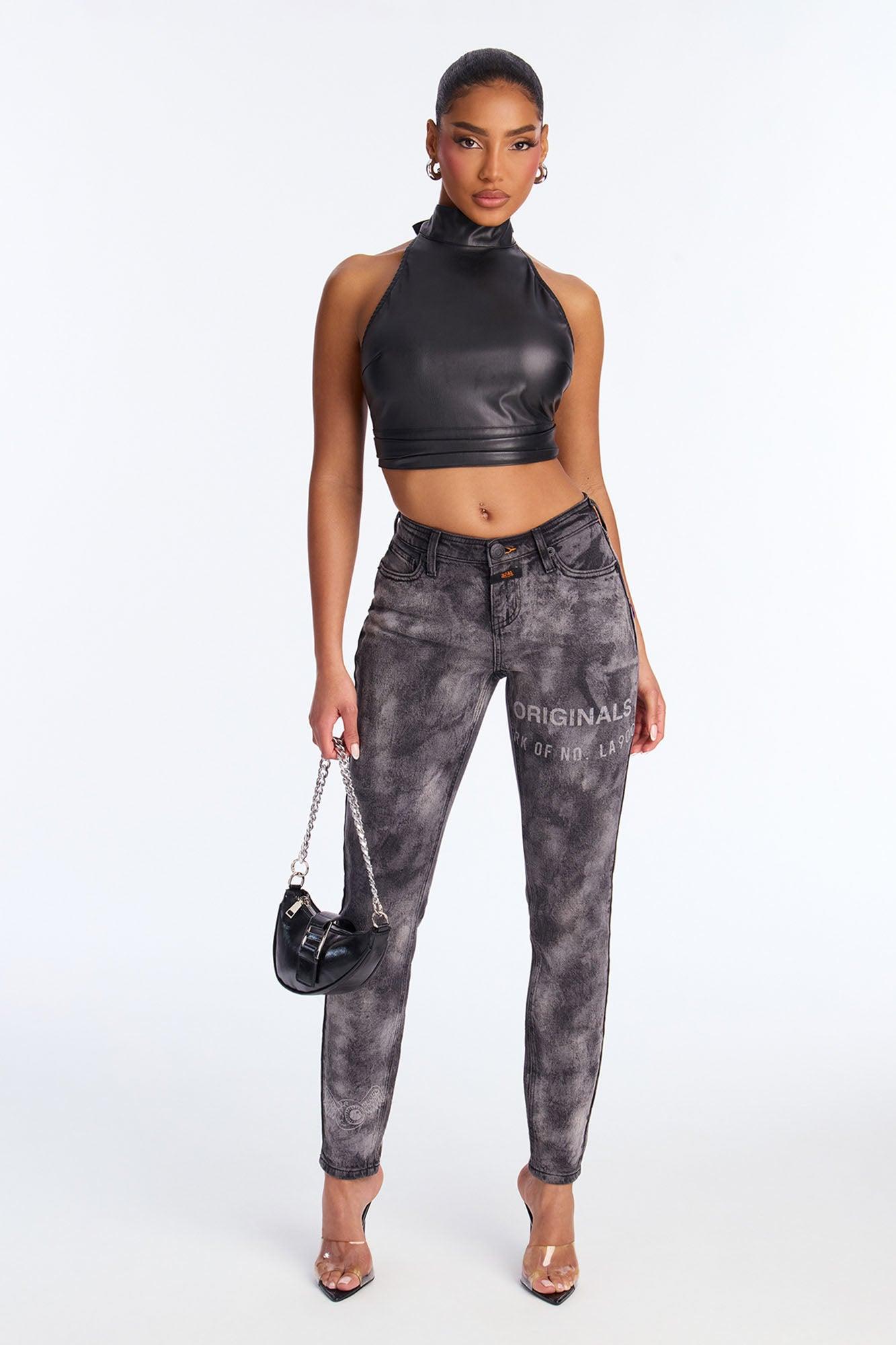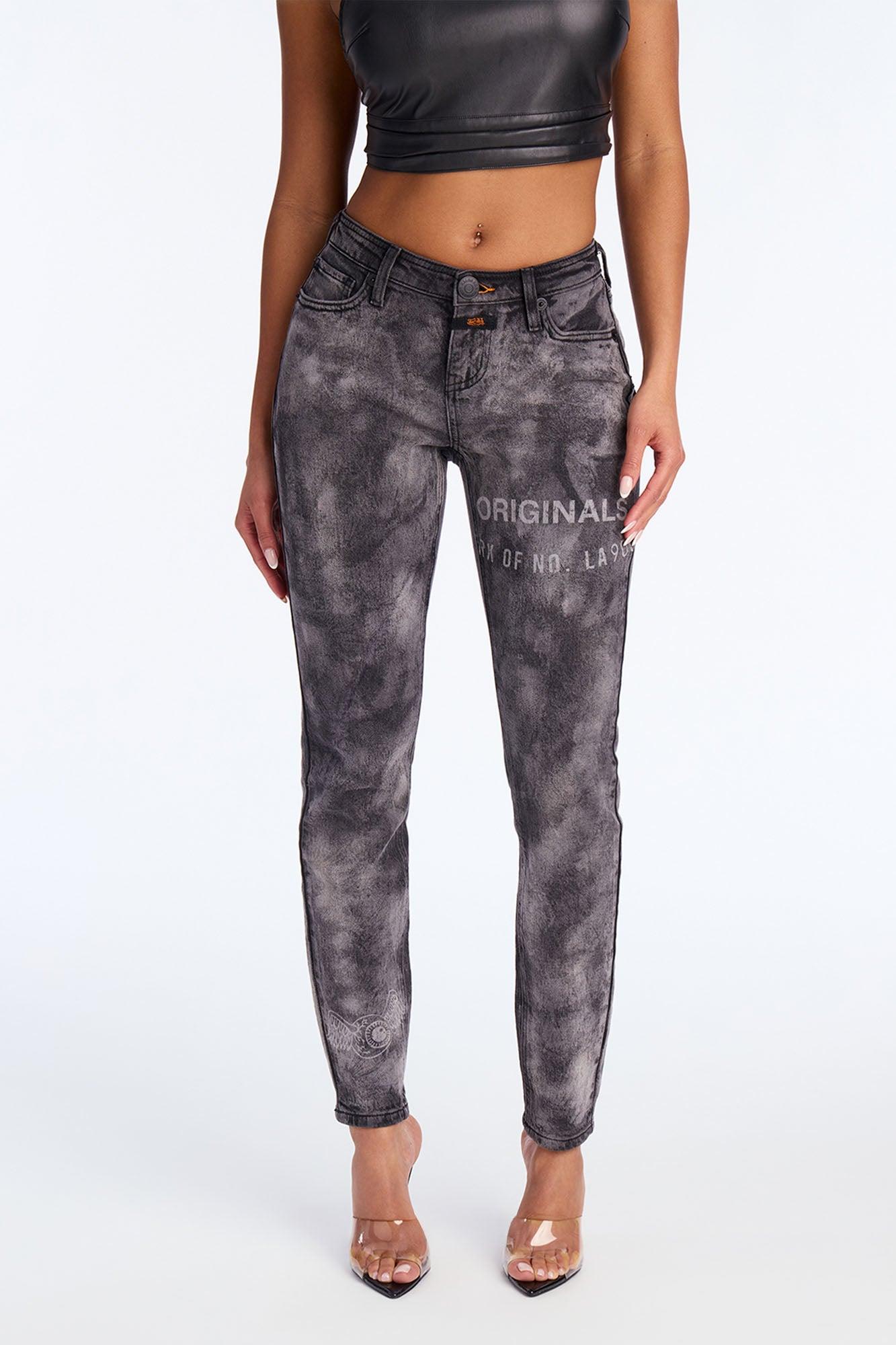 Available In Black Wash. Waist Sizing 24(0), 25(1), 26(3), 27(5), 28(7), 29(9), 30(11), 31(13), 32(15) Skinny Jean Front Pockets Screen Print Patch Detail Heritage Beltloops 8.5" Low Rise 29" Inseam Medium Stretch Disclaimer: Due To The Specialized Wash & Printing Process A Difference In Saturation May Occur. Each Garment Is Unique. Self: 99% Cotton 1% Spandex Imported California Proposition 65WARNING: Cancer and Reproductive Harm - www.P65Warnings.ca.gov.