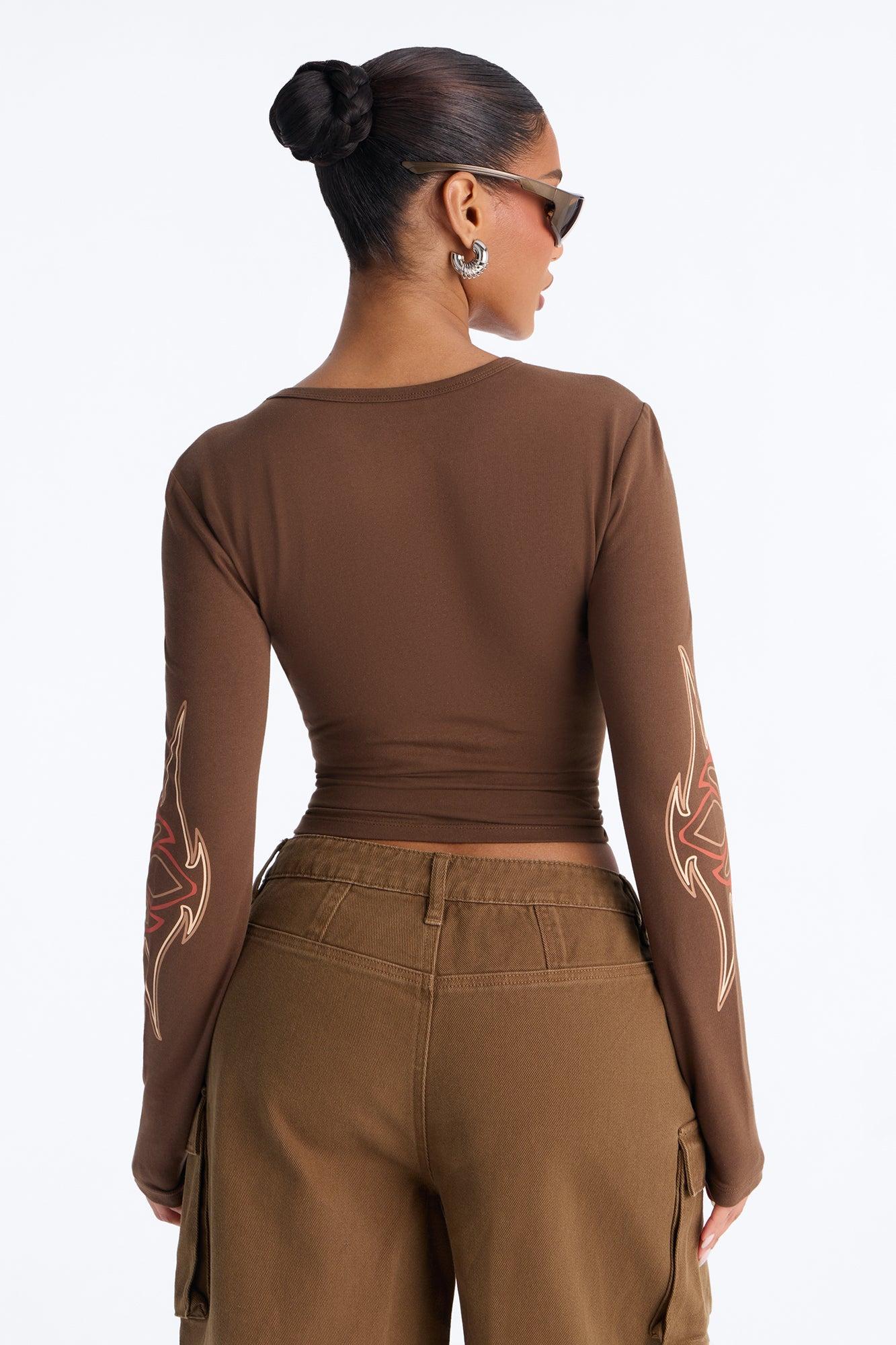 Von Dutch Rebel Flame Long Sleeve Top - Brown Female