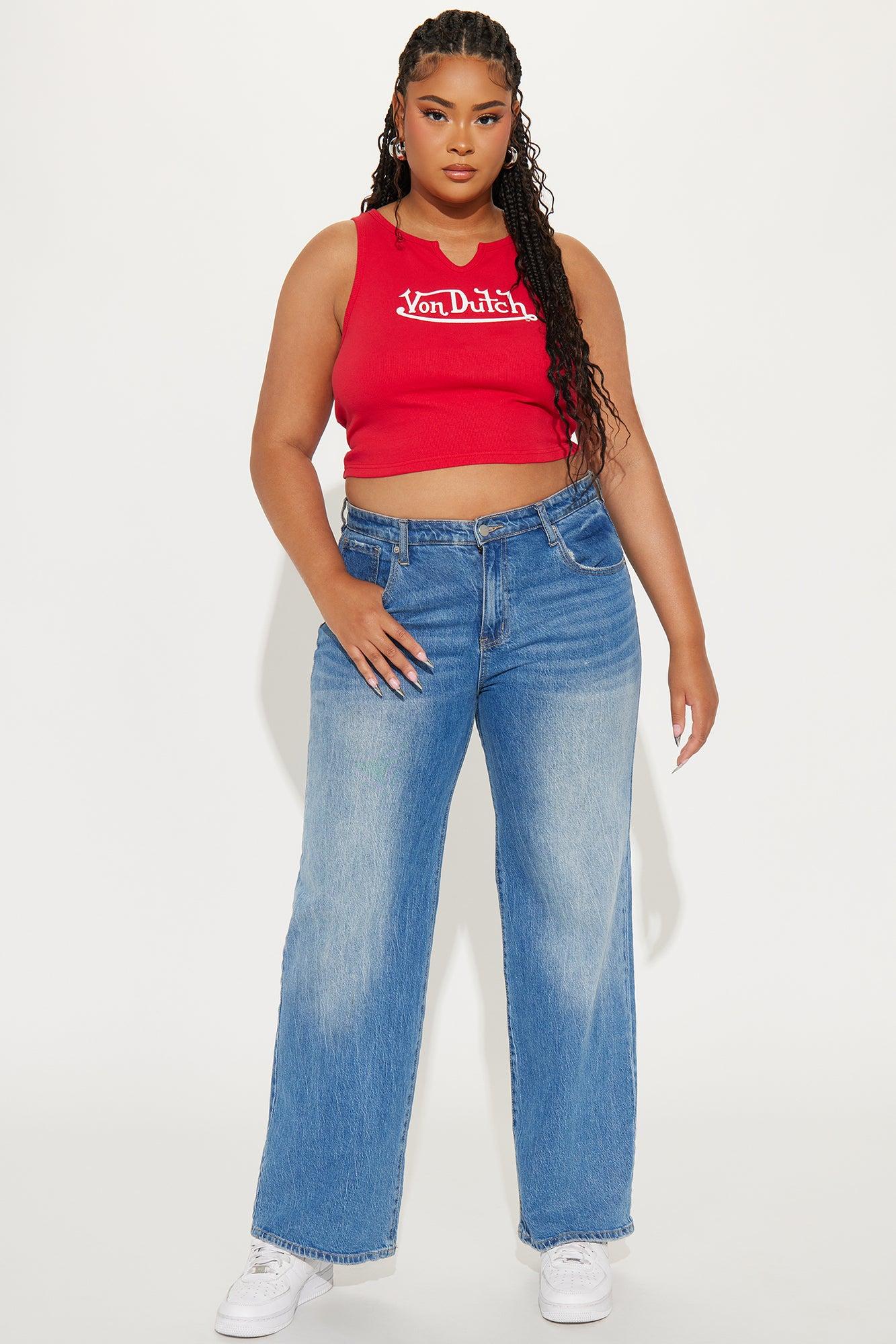 Von Dutch Ribbed Notch Neck Tank Top - Red