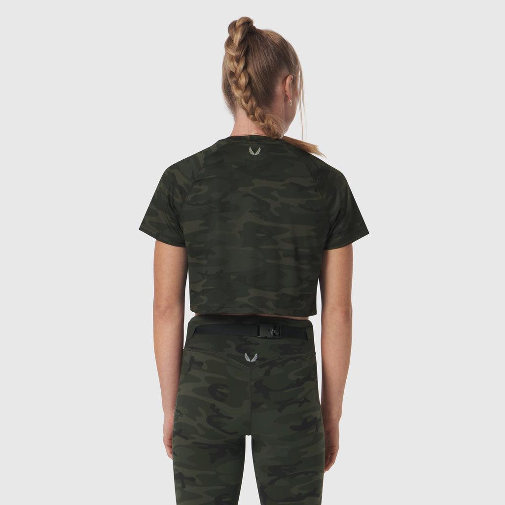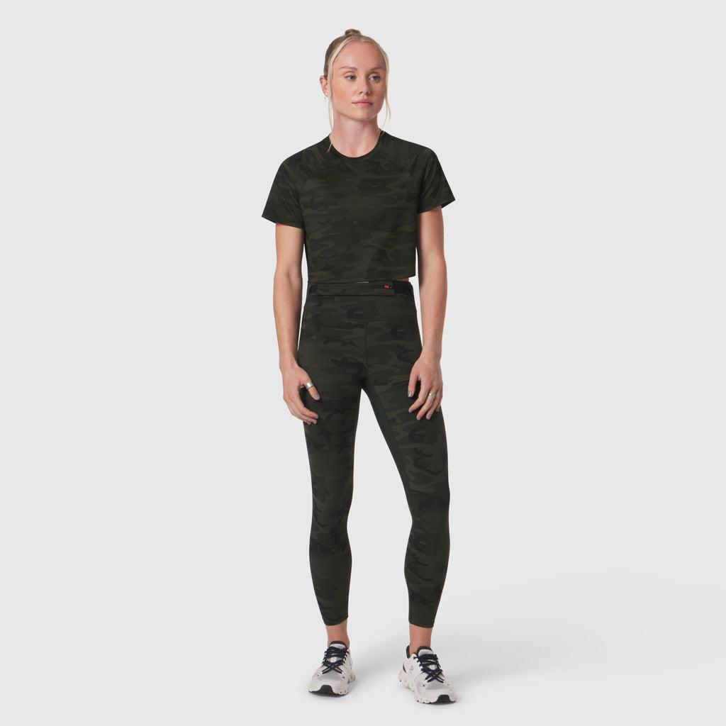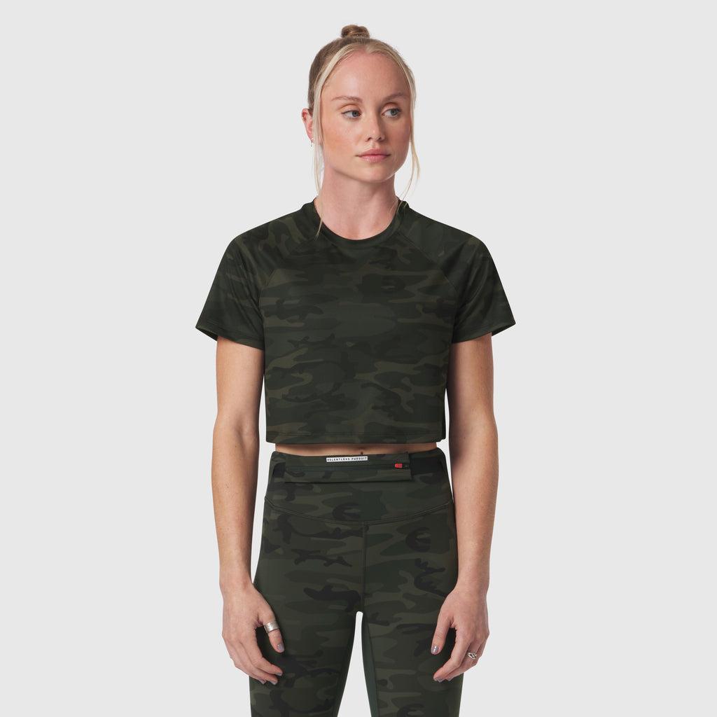 Lightweight mid-crop training tee made from AeroSilver®, our next-generation silver-infused performance fabric built for durability, breathability, and odor resistance. Designed with a curved hem and side splits reinforced with tack seams for added flexibility. Reflective logo details provide visibility during low-light workouts. Model is 5'5" and 127lbs wearing size S.