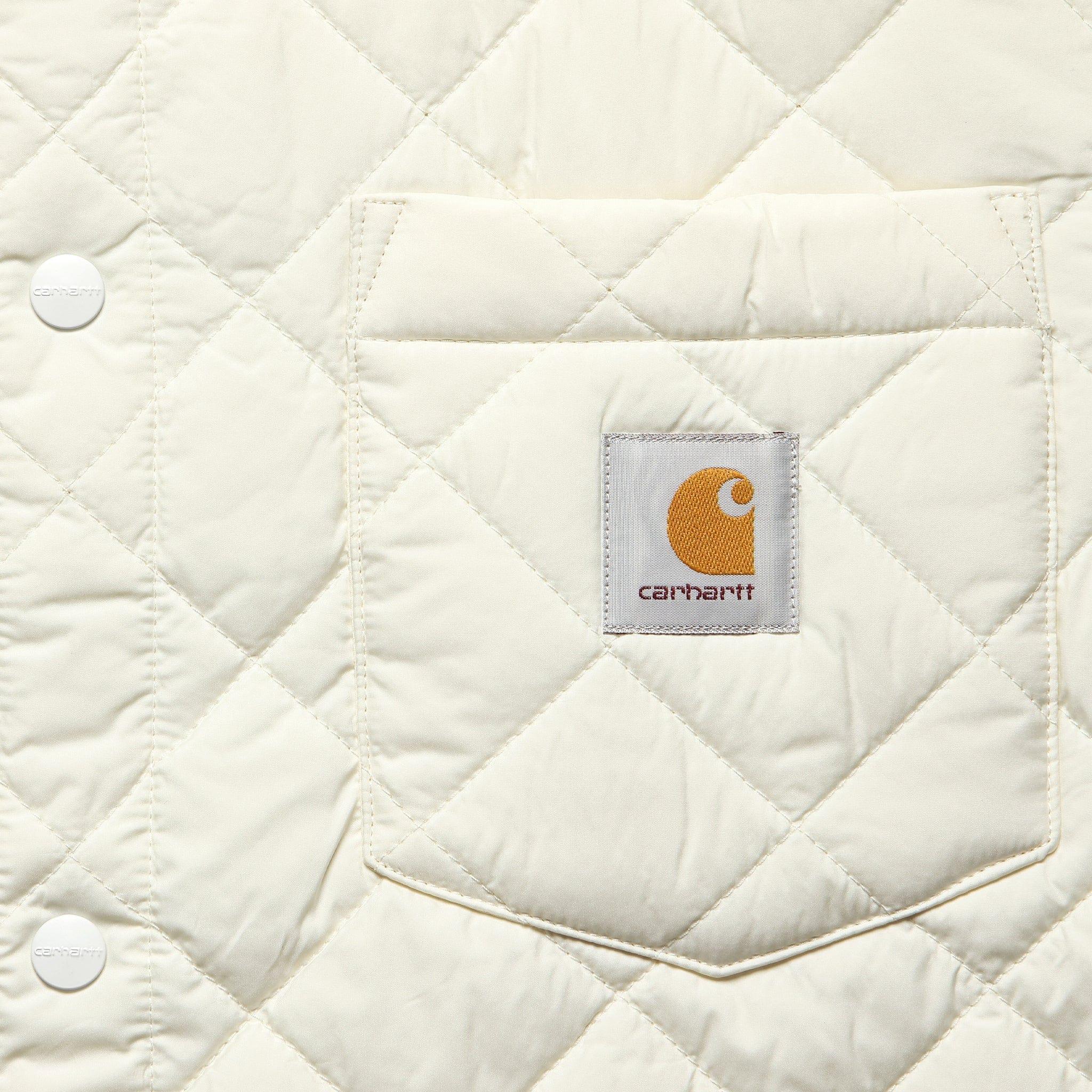 The Wadeson Shirt Jacket from Carhartt WIP is made with 100% recycled polyester and features a diamond-quilted construction with a down-alternative fill to provide lightweight insulation for the colder months ahead. It has a relaxed fit for easy layering and comes with a pair of handwarmer pockets, a single chest pocket, and a snap-button closure to seal the deal. Lightweight recycled polyester Diamond-quilted construction Recycled polyester fill Snap-button closure Two welt handwarmer pockets Single chest pocket Spread collar Relaxed fit that runs true to size We recommend taking your normal size Materials: Shell & Lining: 100% recycled polyester | Fill: 100% recycled polyester The following measurements are for size Medium: Chest: 46” | Shoulder: 18” | Sleeve: 33” | Length: 29 ½”