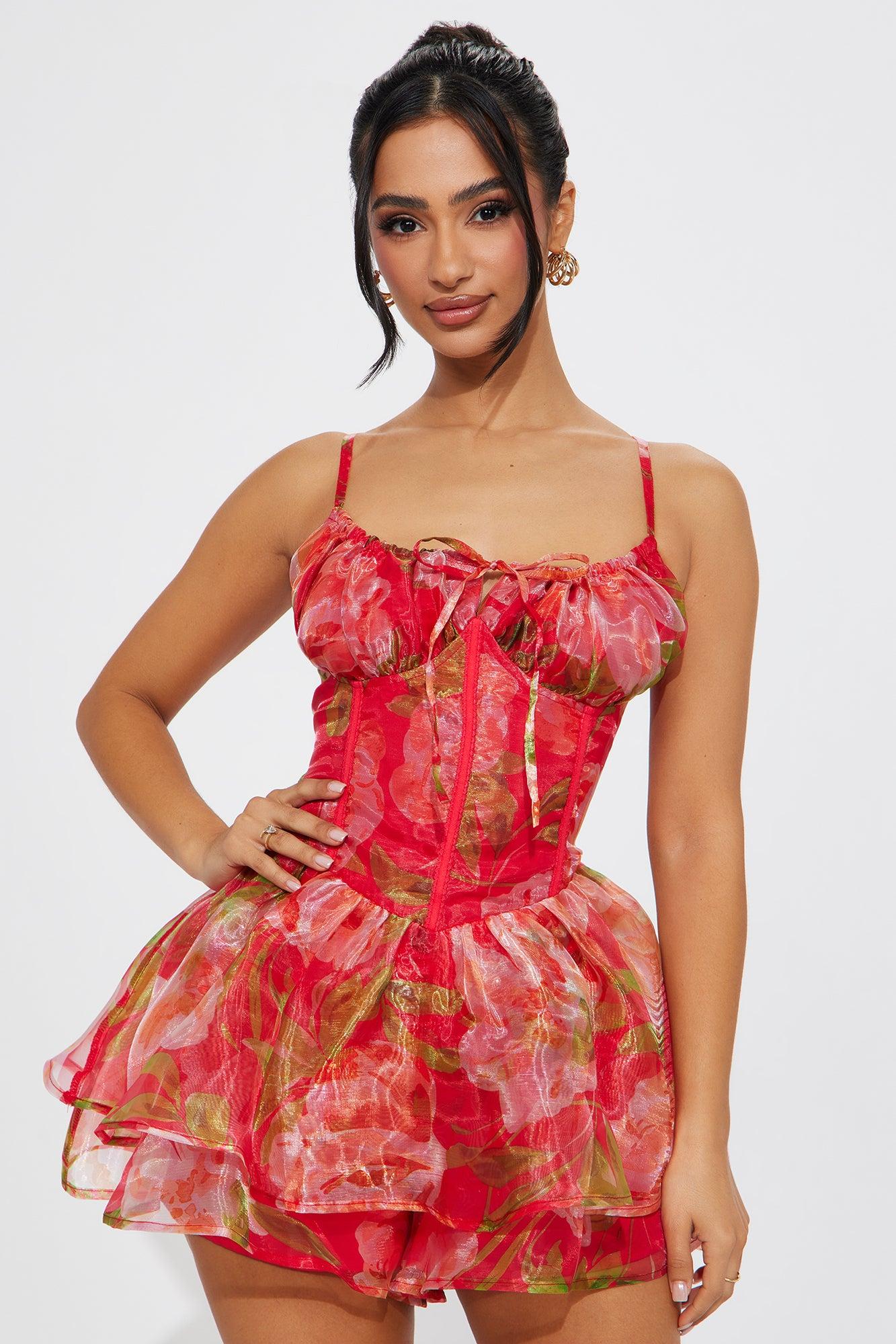 Watch Me Blossom Floral Romper - Red/combo
