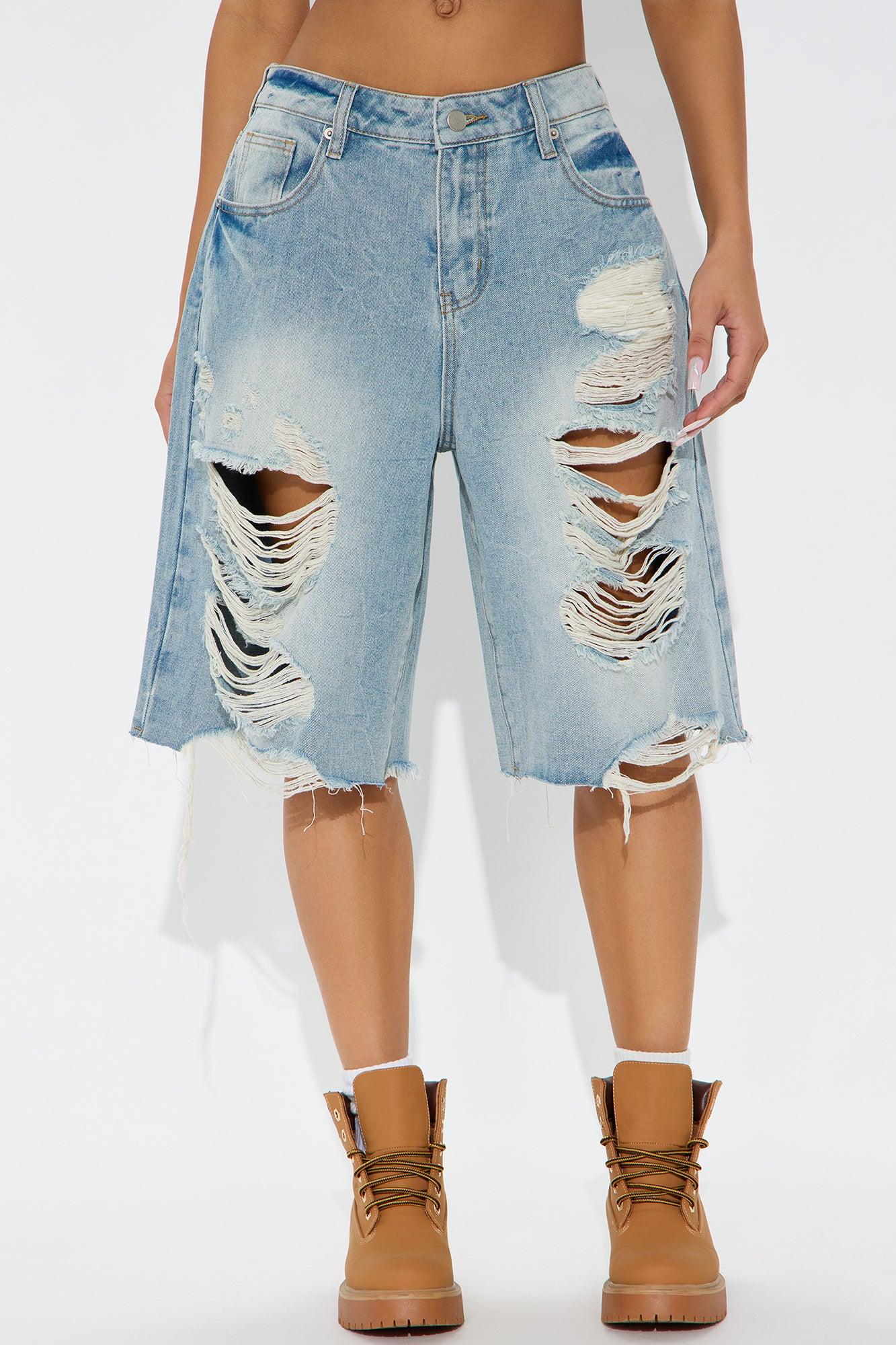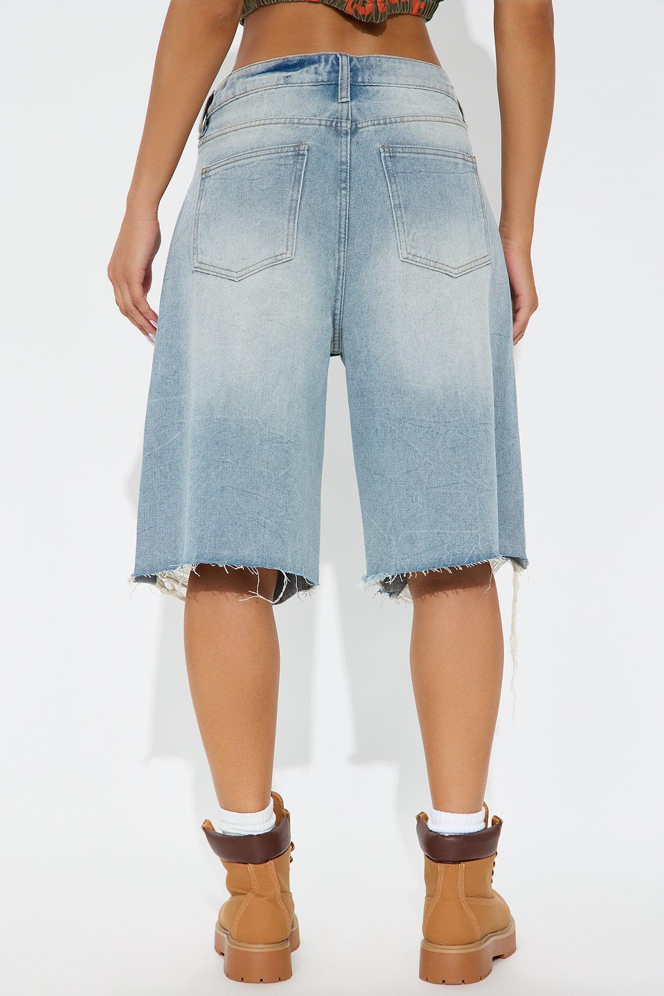 Available In Vintage Wash. Denim Short 5 Pocket Ripped Raw Hem 12" High Rise 11.5" Inseam Non Stretch Disclaimer - Due To The Specialized Distressing & Wash Process, Each Garment Is Unique. 100% Cotton Imported California Proposition 65WARNING: Cancer and Reproductive Harm - www.P65Warnings.ca.gov.