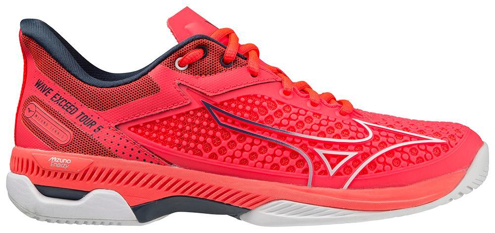 Faster, lighter and more flexible than before, the all-new WAVE EXCEED TOUR 5 AC is designed for the advanced tennis and pickleball player looking for the utmost in explosive on-court performance. Our latest technological innovation, MIZUNO ENERZY, is integrated in the midsole at the forefoot and throughout the sockliner to deliver quicker turns, starts and stops for optimum performance and ultimate energy return. An all-new "bootie" construction and a remodeled 3D-SOLID upper design offer greater flexibility and comfort, allowing the foot to truly integrate with the shoe no matter how intense the movements. MIZUNO WAVE® Technology increases ankle stability and shock re-distribution while the DuRubber outsole provides the durability and longevity top players demand. 6-MONTH OUTSOLE WARRANTY.