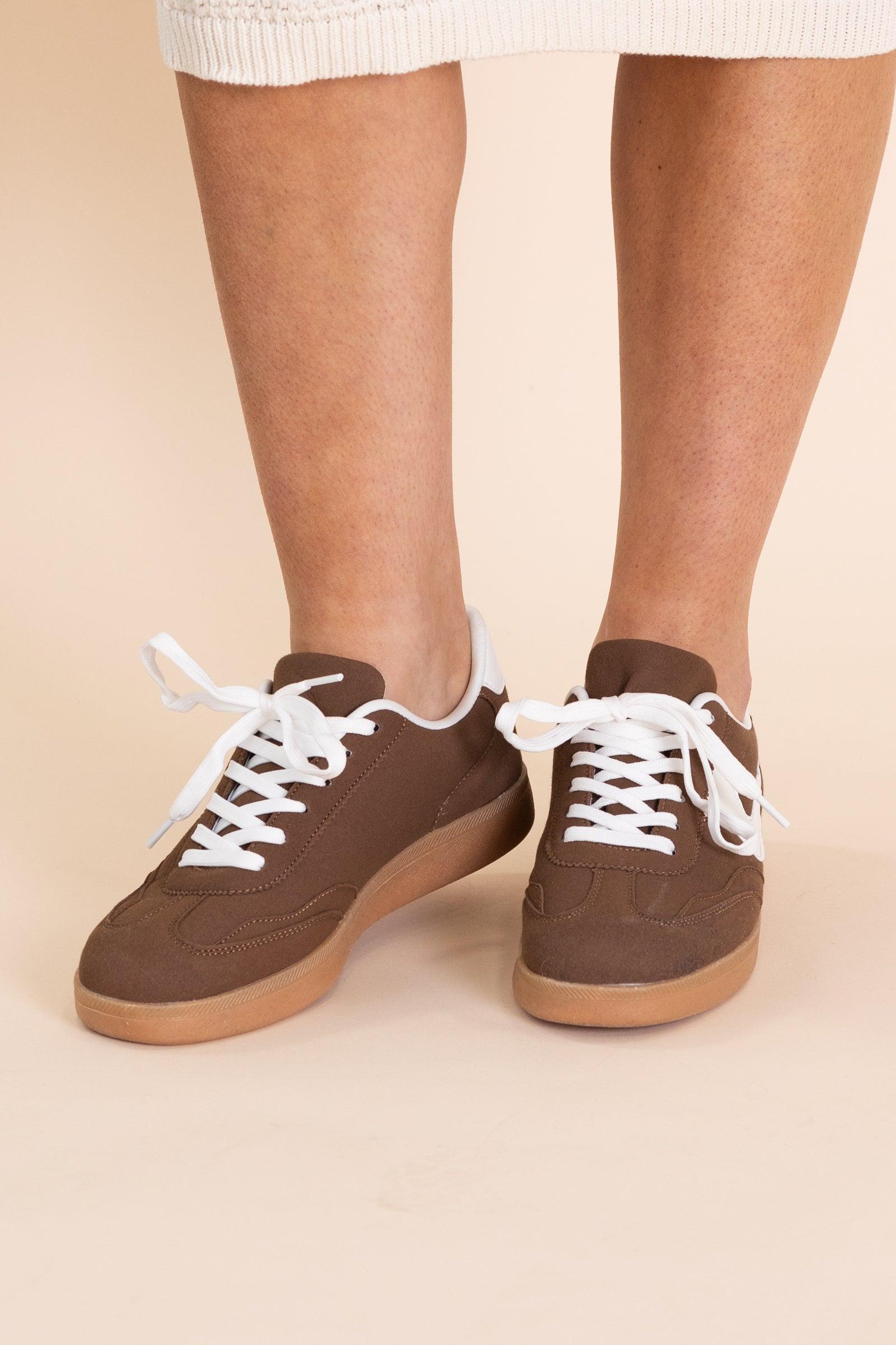 Product Details Colors: Brown, White Print: Two Tone Other Details: Lace Up Sneaker Brand: La Sheelah Size and Fit True to size.