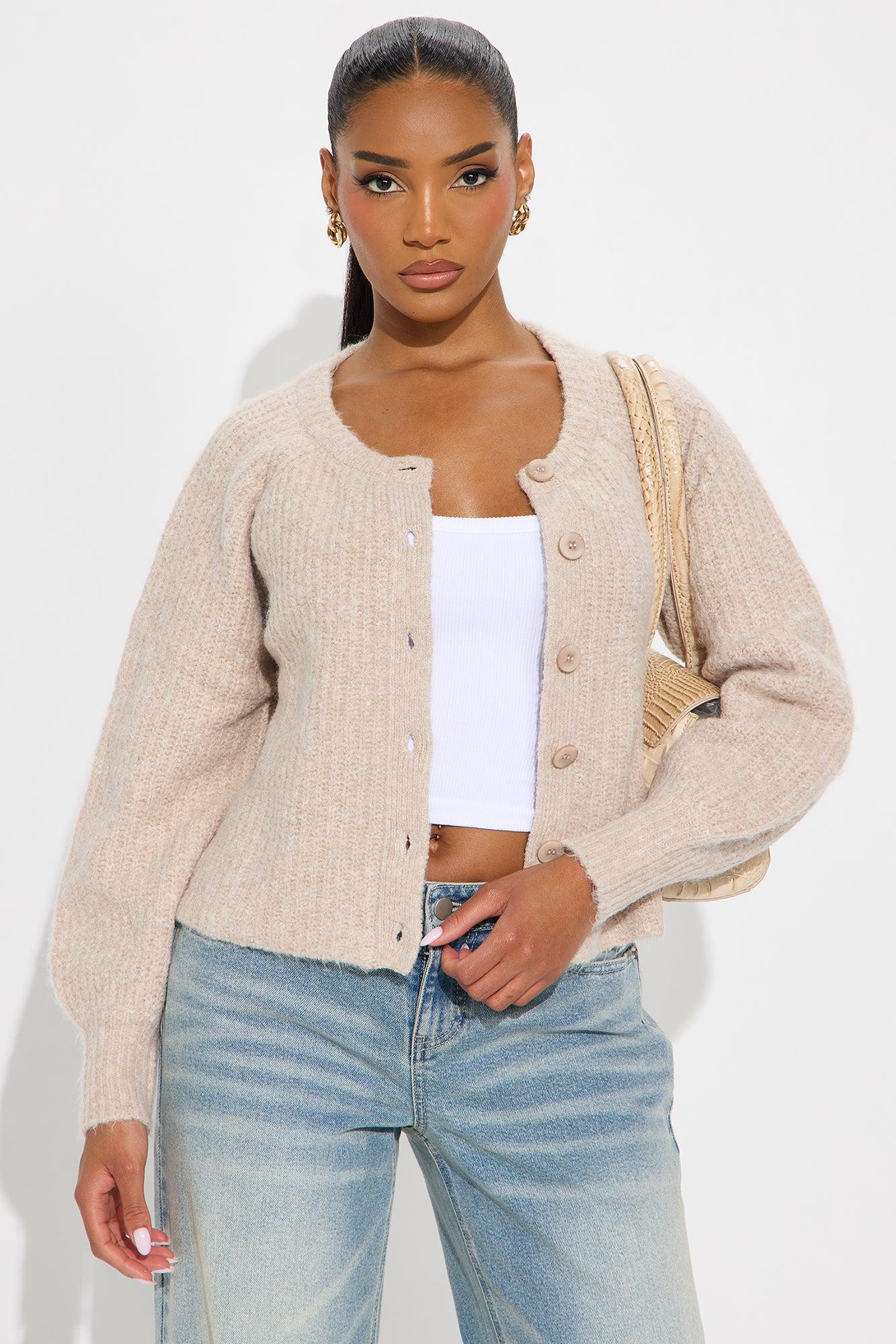Available In Beige, Black, Grey And Pink. Cardigan Sweater Long Sleeve Balloon Sleeve Crew Neck Button Down Cropped Ribbed Hem Self: 57%Polyester 26%Acrylic 14%Nylon 3%Spandex Imported