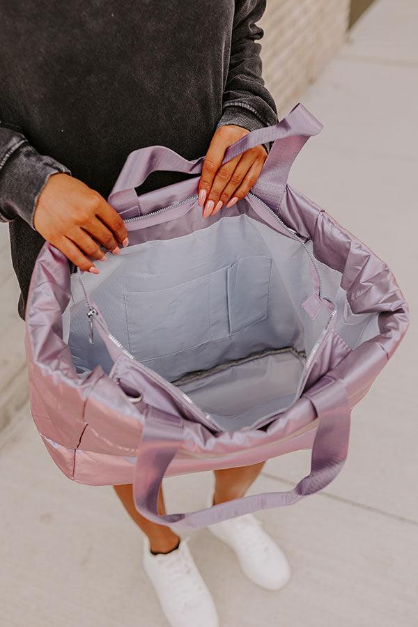 - Perfect for road trips, daily gym visits, or everyday use, this trendy bag has enough space to carry all your essentials and so much more! Keep it cute no matter your destination with this adorable piece. - Metallic faux leather material with a puffy, quilted texture - Silver colored metal hardware - A large two zippered pocket on the front - Top zip closure - Two handles as well as a detachable, adjustable length shoulder strap - A spacious, fully lined interior featuring to accessory pockets as well as a zippered pocket