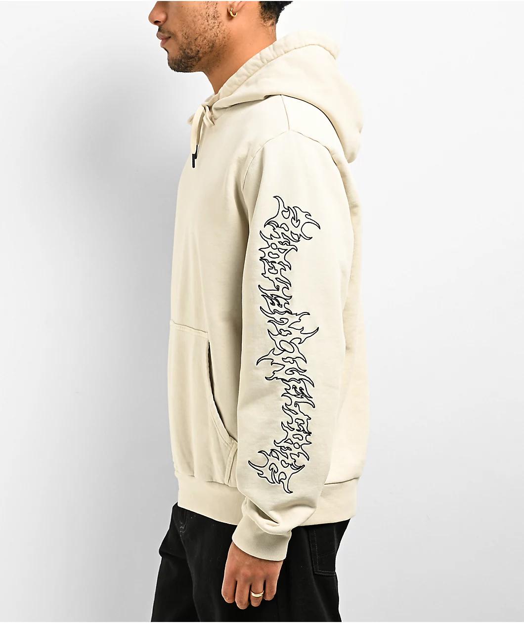 Treated with a bone white pigment dye, the Barb Sleeve Embroidered hoodie from Welcome Skateboards produces a unique fade pattern over time. The boxy silhouette is made using heavyweight 15 oz. cotton, with a cozy brushed interior for all-day warmth.